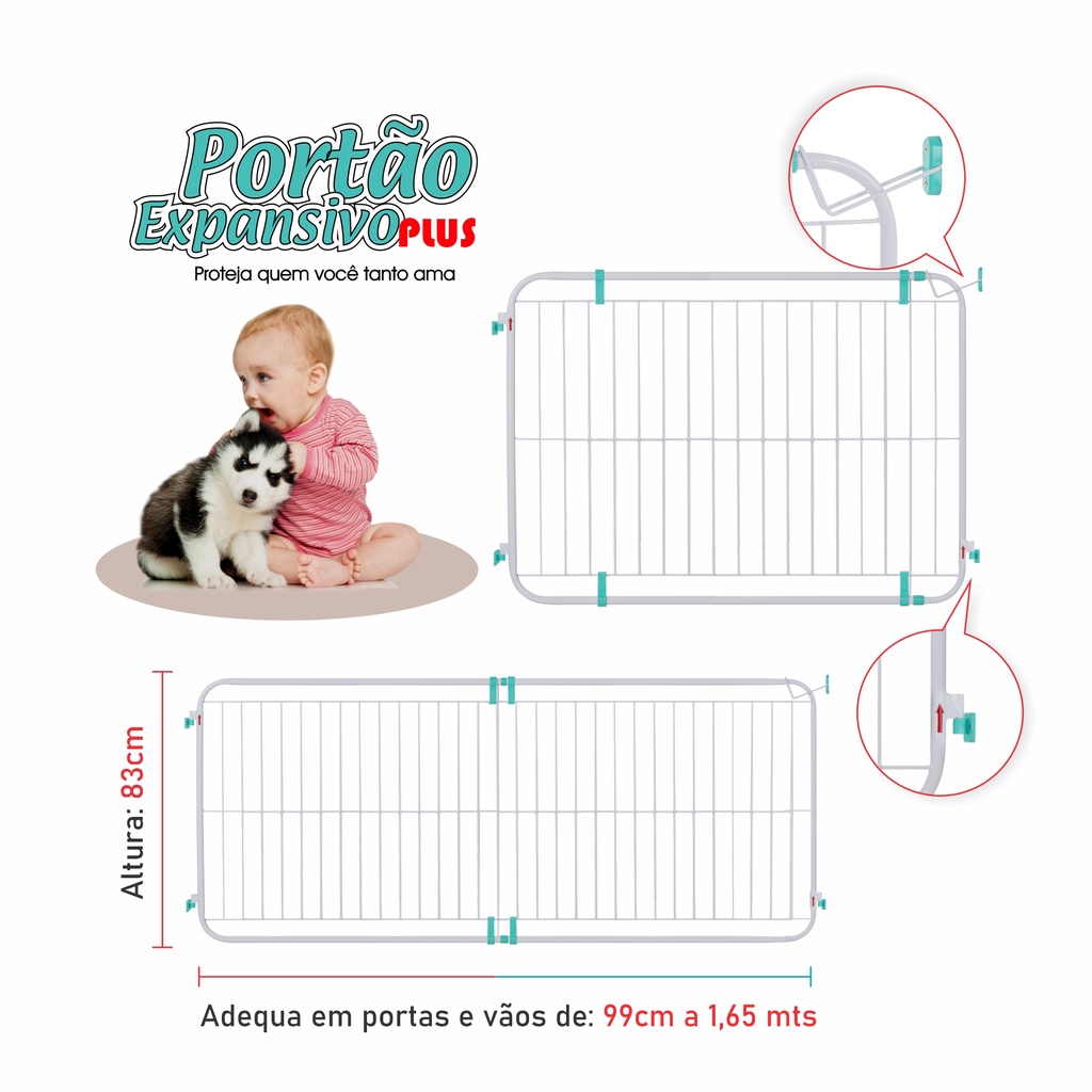 Portão Expansivo Plus 99cm a 165 Cm PetÚtil Proteção Pet Cachorro ou Criança Kids