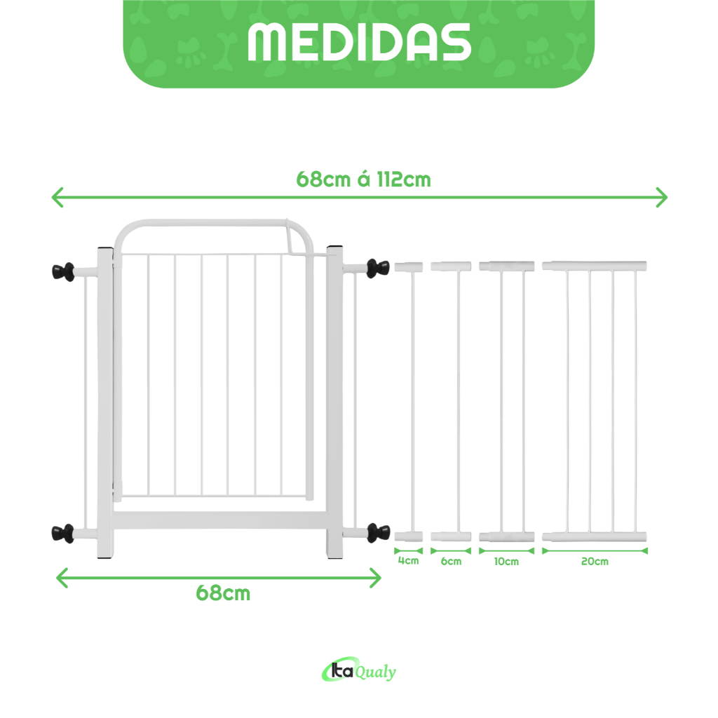 Portão Grade para Cachorro Pet Bebê porta de 68cm a 112cm Portãozinho com Extensor de Pressão Parede