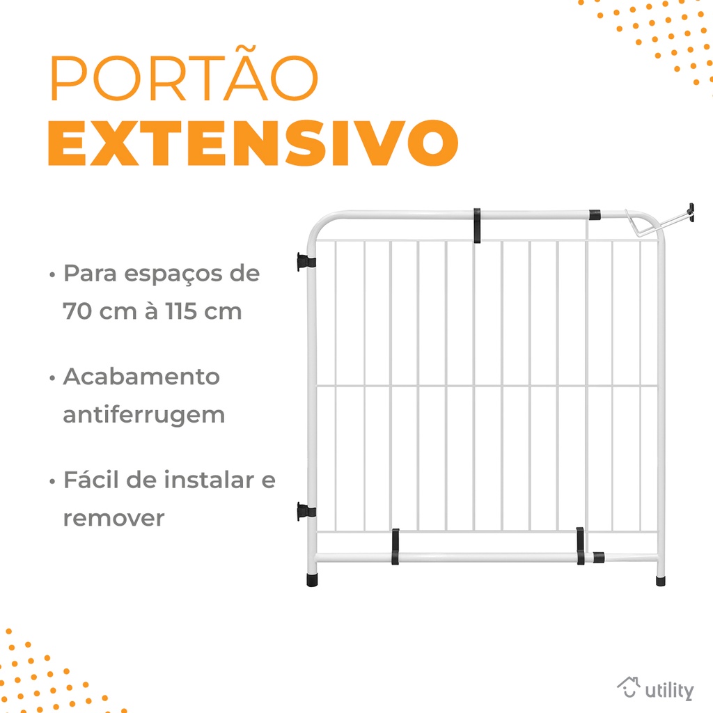 Portão Pet Cães Cachorro Bebê Extensivo 70 Até 115 Cm