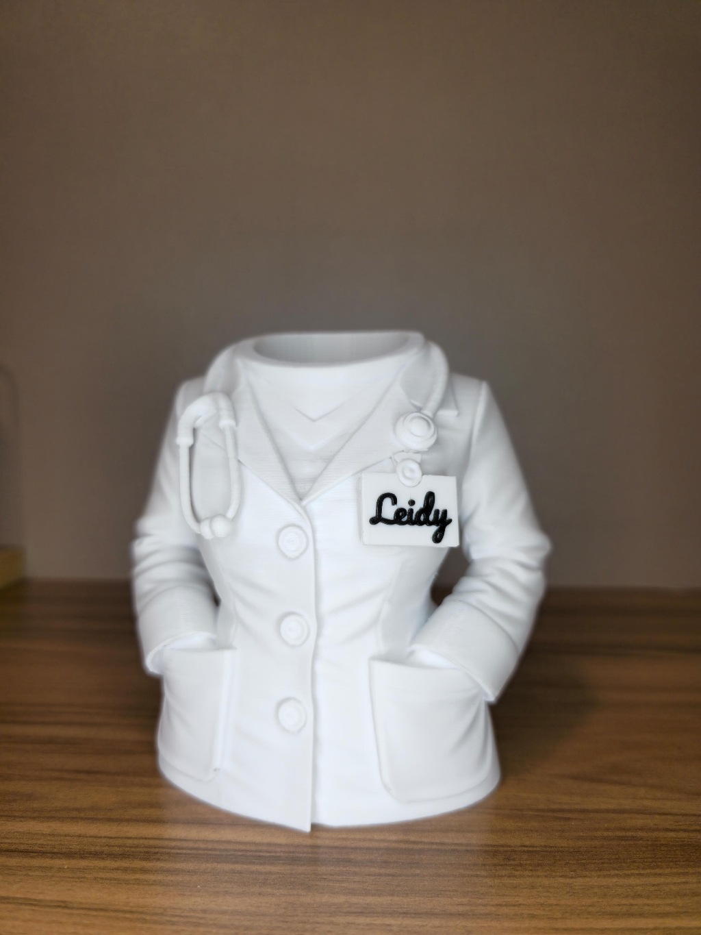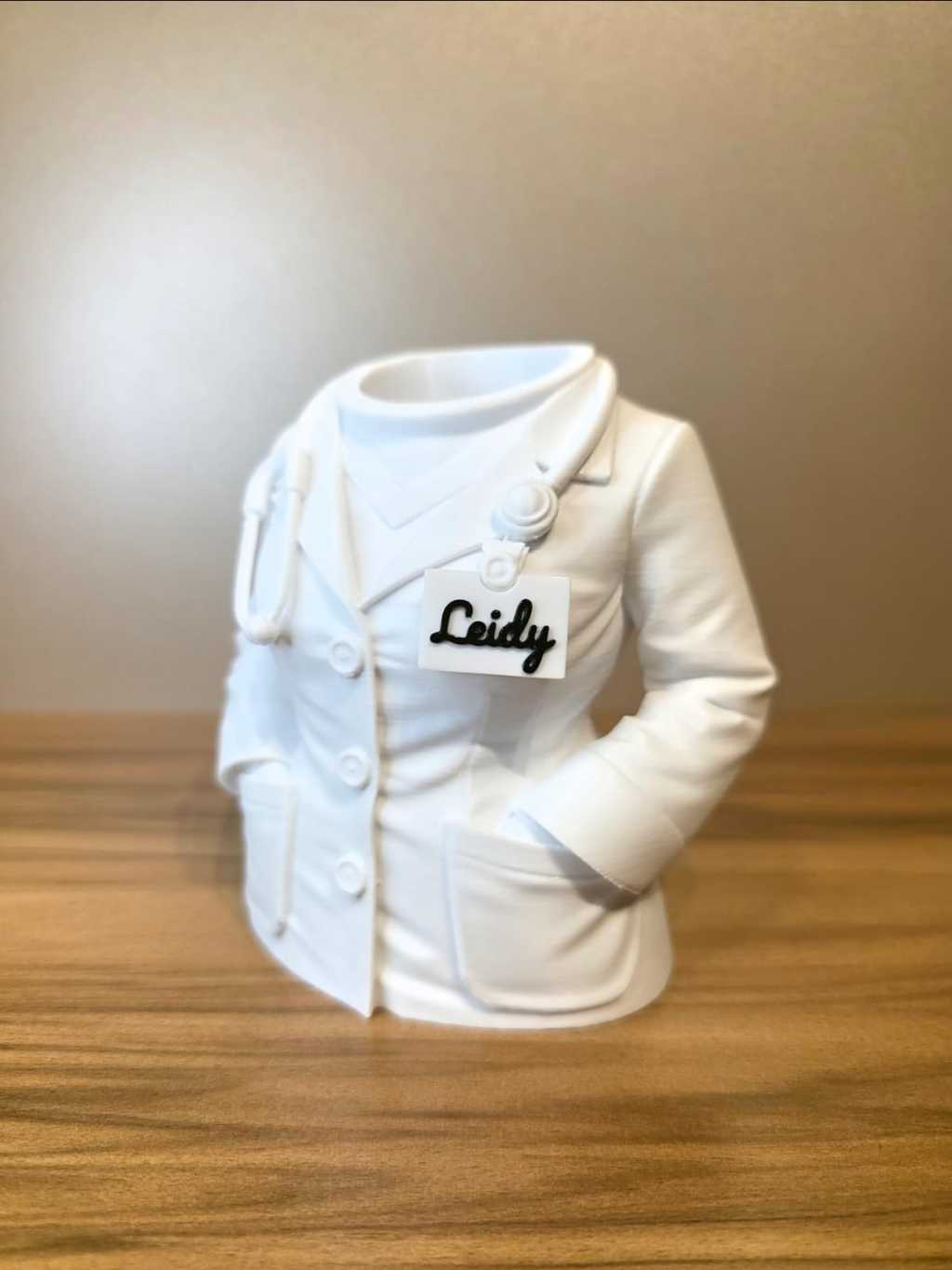 Porta‑canetas em formato de jaleco — personalizado para profissionais da saúde