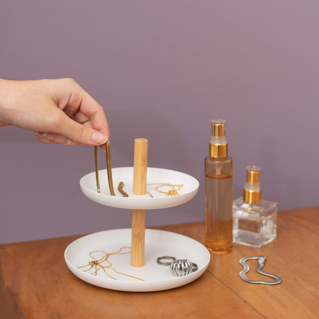 Porta-Acessórios de Metal E Bambu 16cm - Oikos