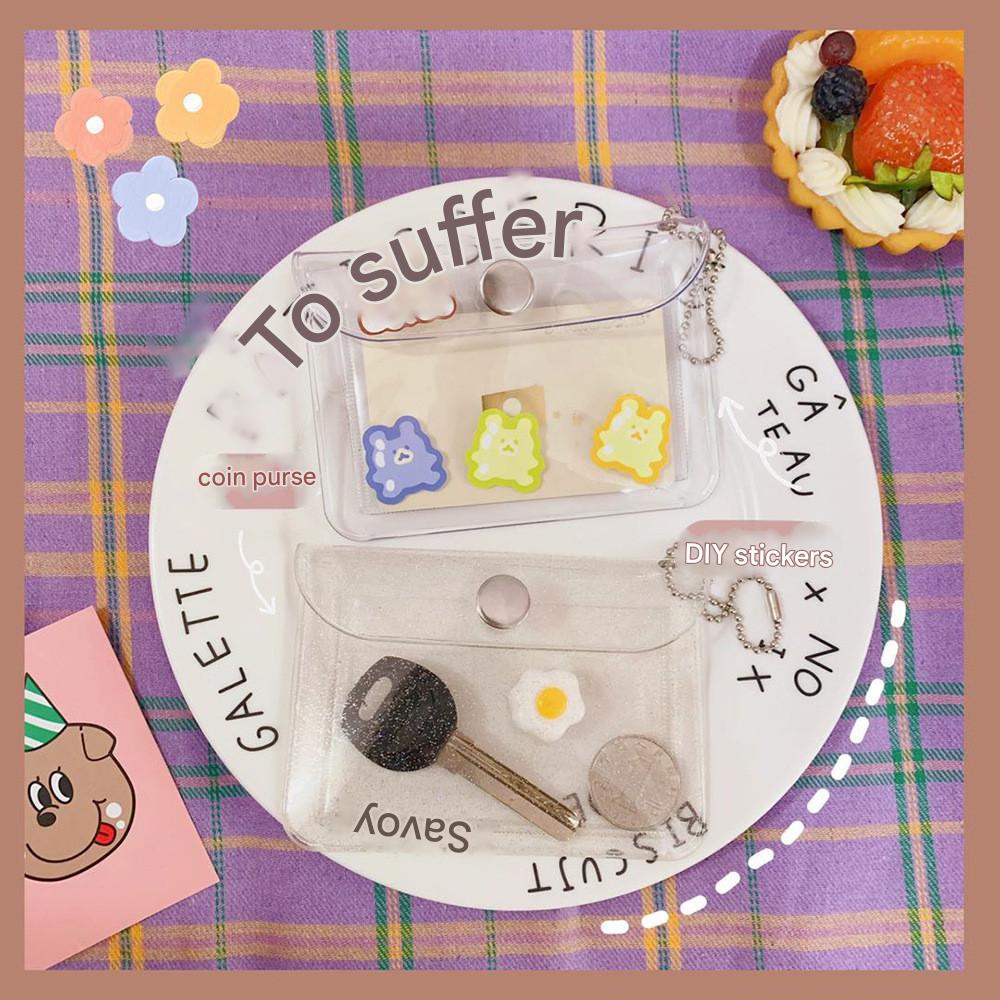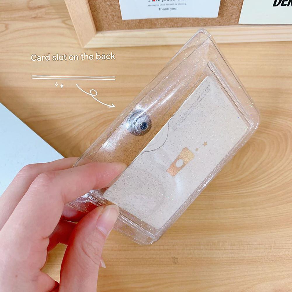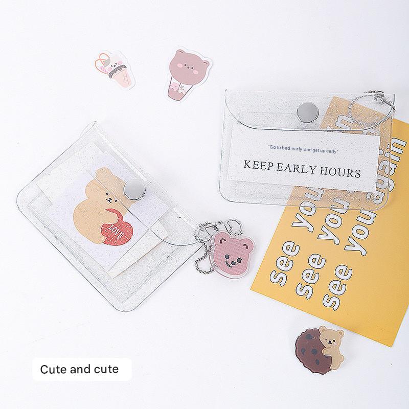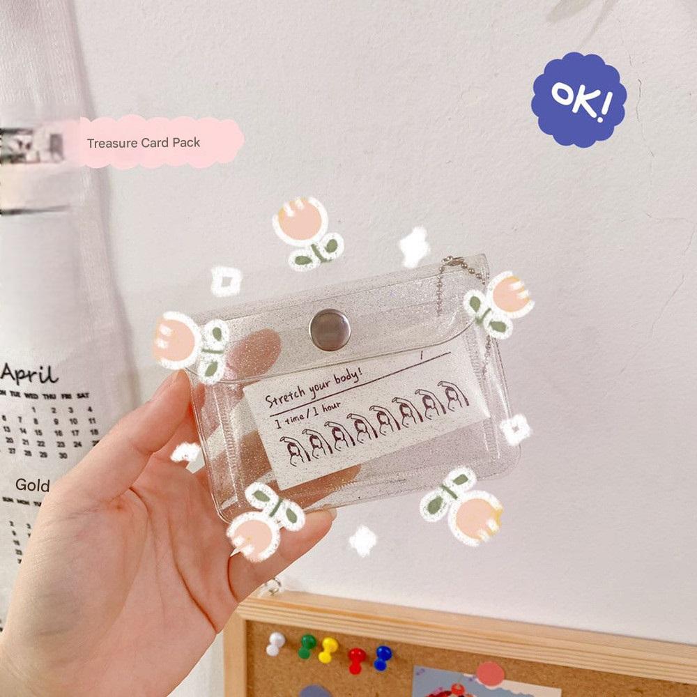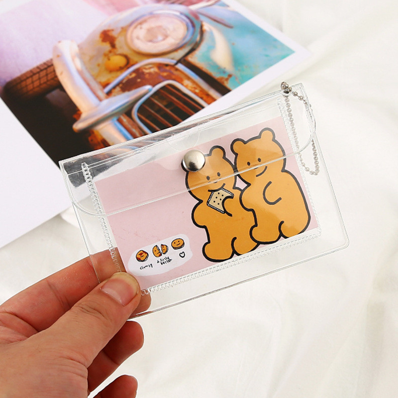 Porta-Cartões Transparente Coreano , Carteira De Identificação Rosa Instagramável , Capa Fina Para Cartão De Ônibus RFID