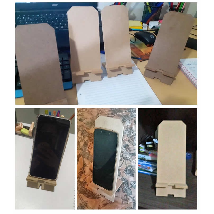 kit Suporte para Celular Iphone Smartphone Porta Celular Apoio de mesa Portátil em madeira mdf