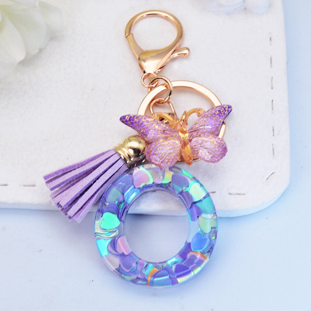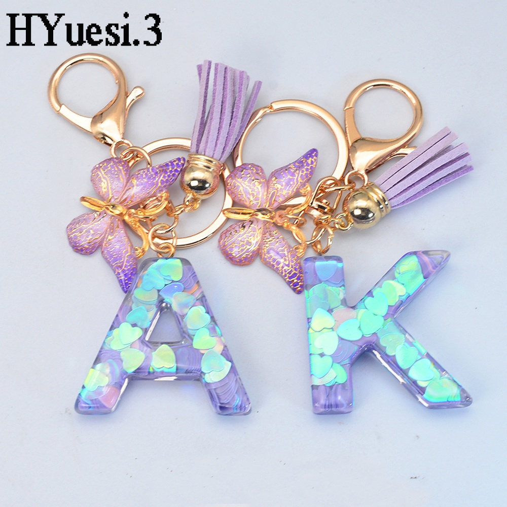 Porta-Chaves Com Lantejoulas Púrpura Nome Butterfly Tassel 26 Alfabeto Iniciais