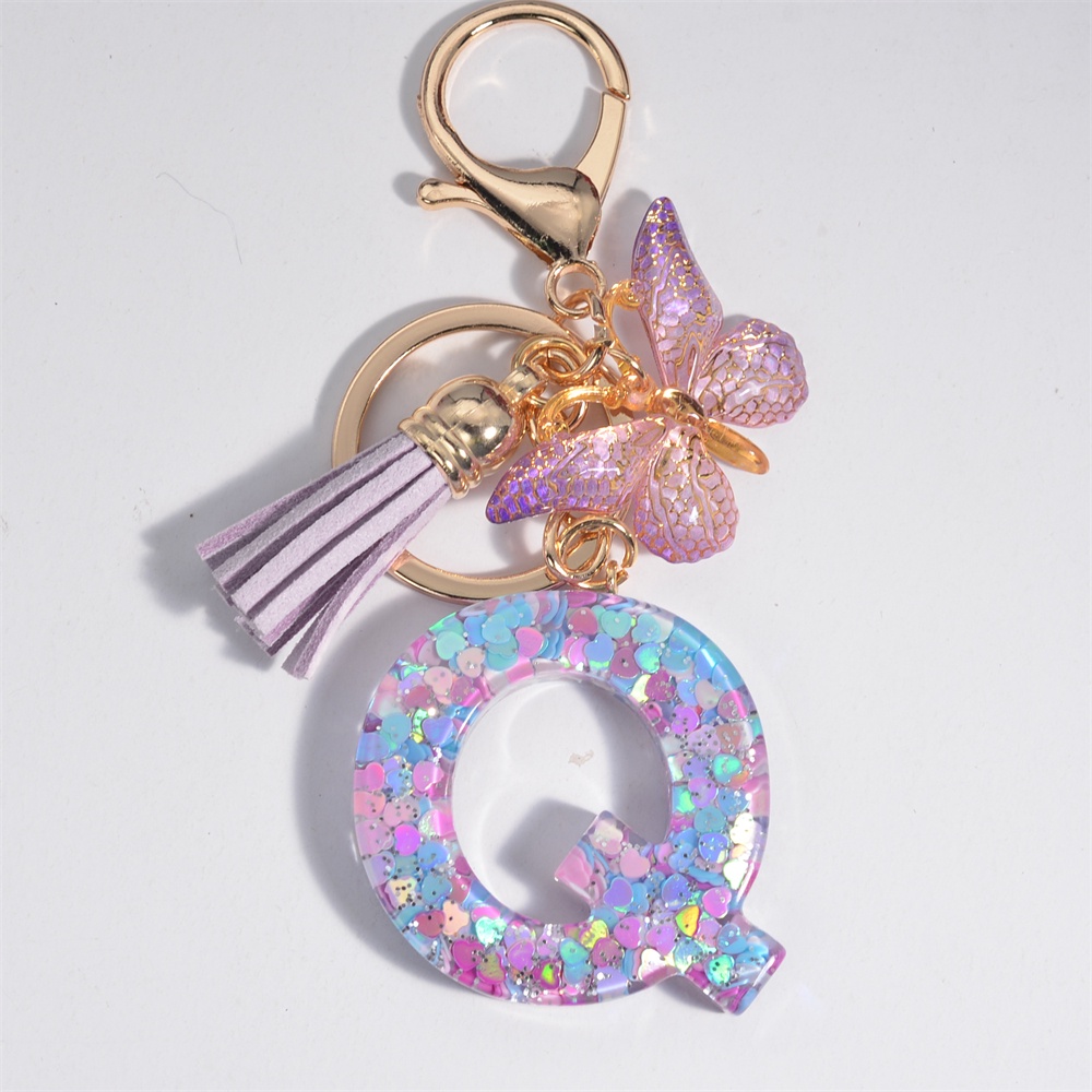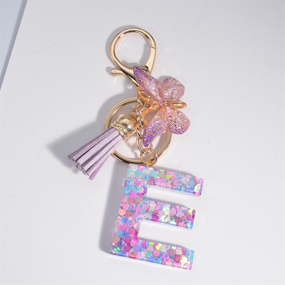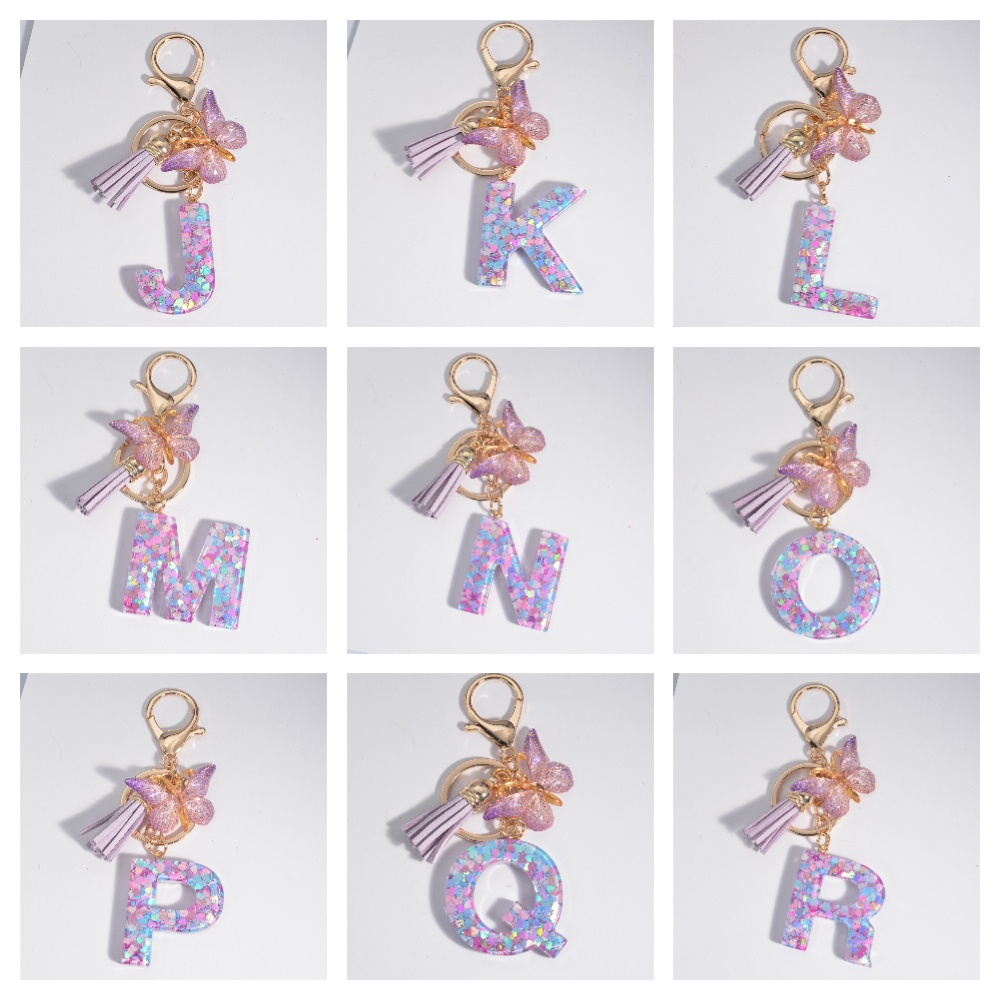 Porta-Chaves Com Letra Inicial Para Mulheres Tassel Butterfly Purple Cute Car Key Ring Carteira De Menina Bolsas Mochila Ornamentos