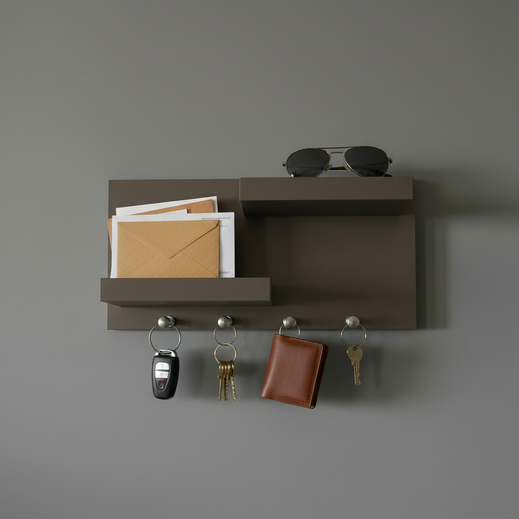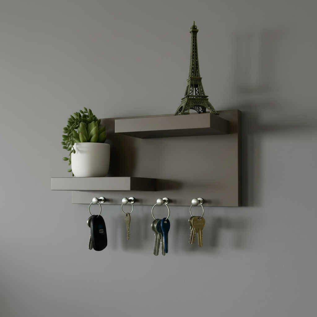 Porta Chaves Com Prateleiras Cinza 100% MDF