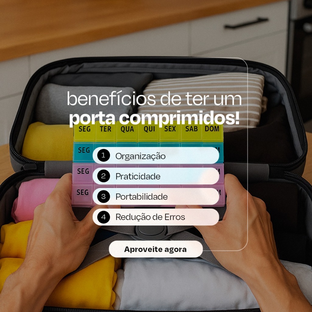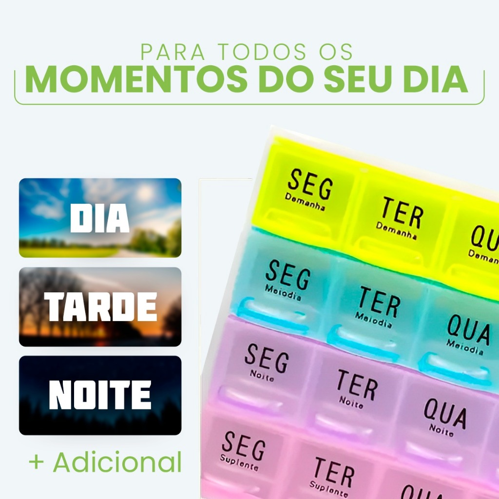Porta Comprimidos Mensal Manhã, Almoço, Noite e Adicional 28 Dias
