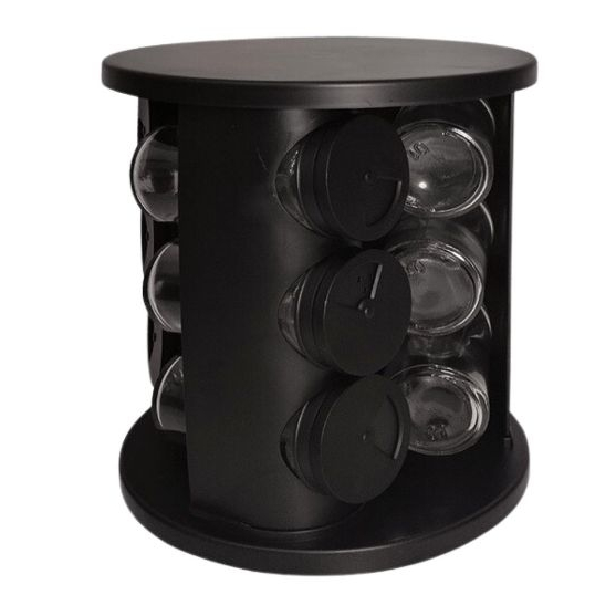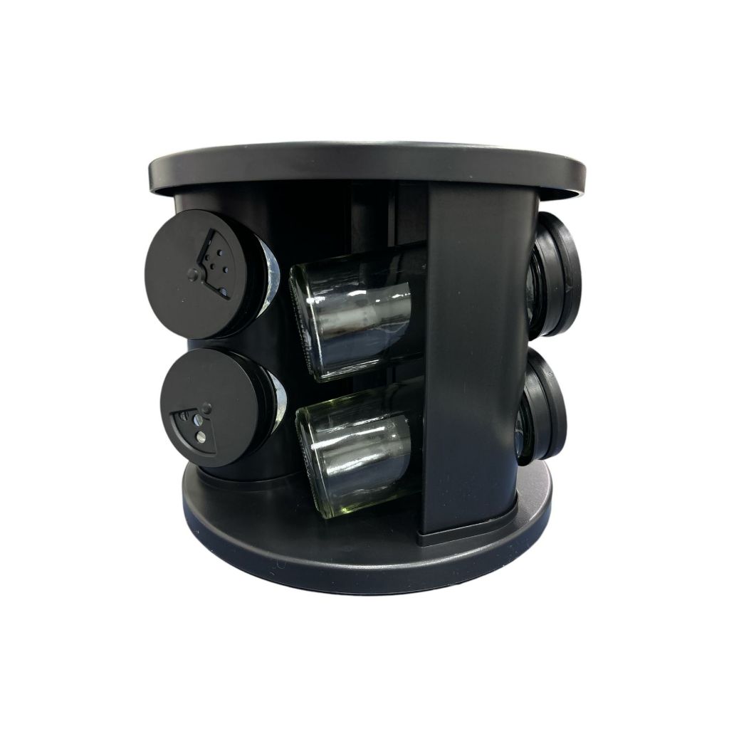 Porta Condimentos Temperos Giratório Potes Vidro Tampa Dosadora Preto