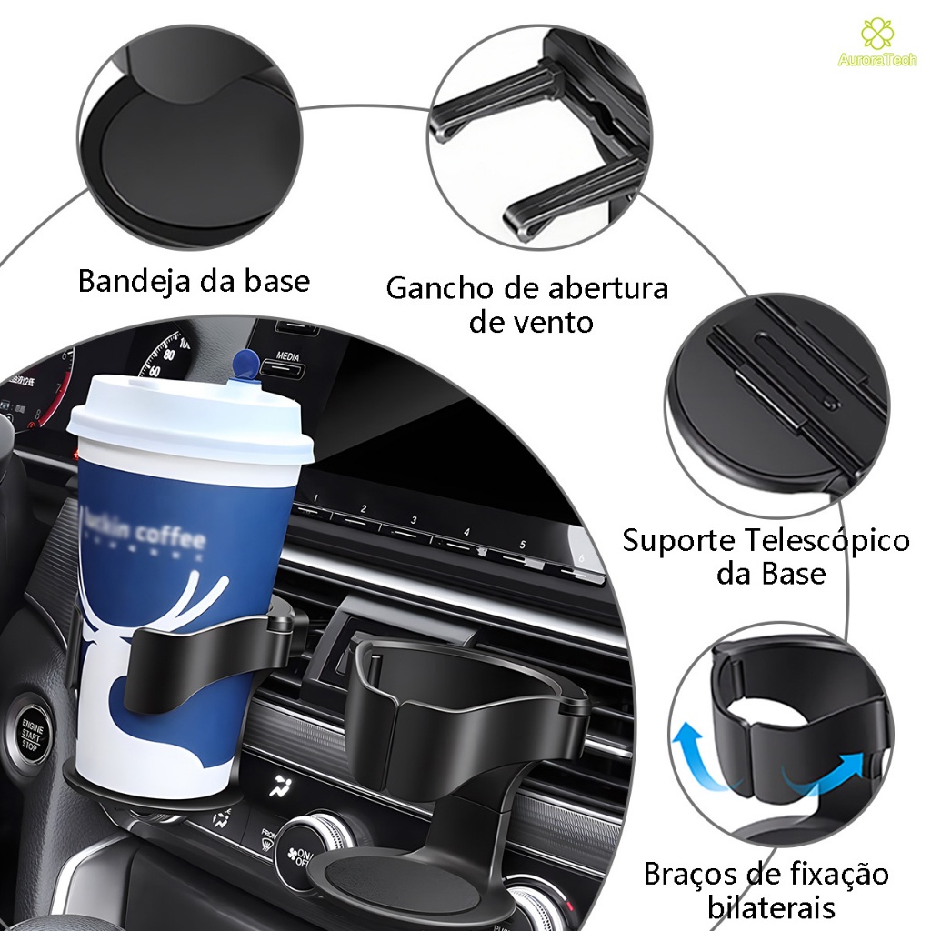 Porta Copos Carro Ajustável Universal À Prova De Respingos E De Inclinação Para Copos Garrafas
