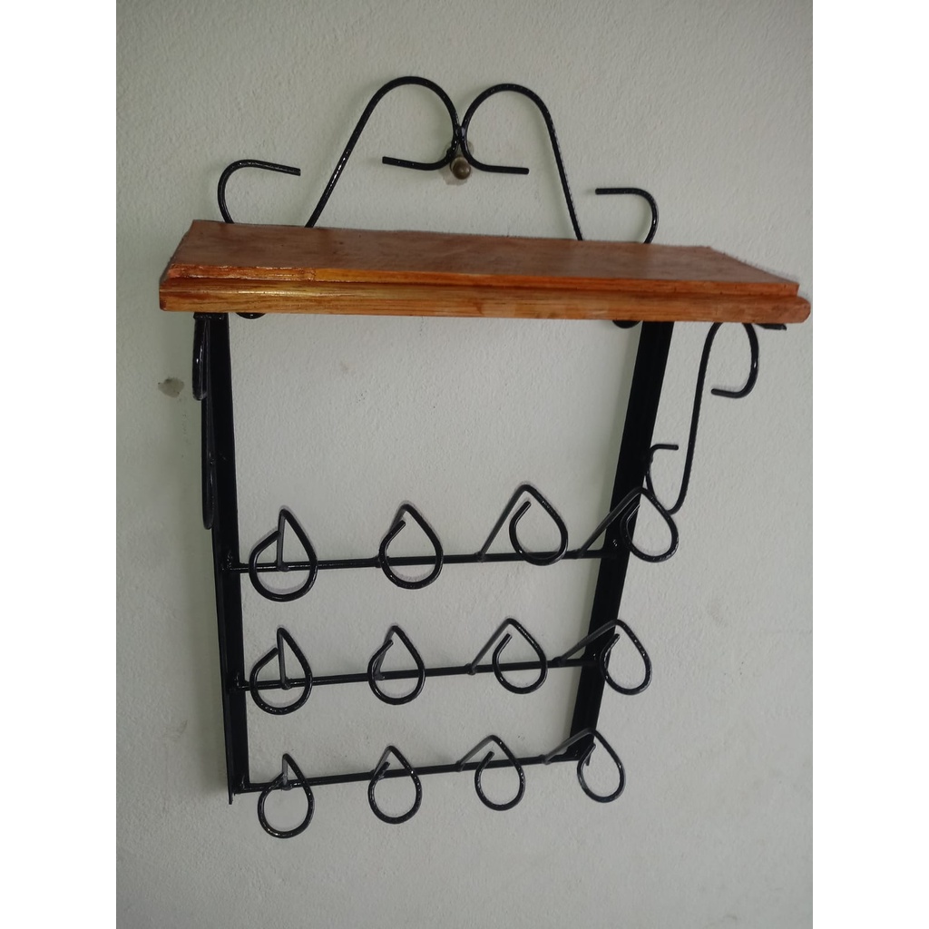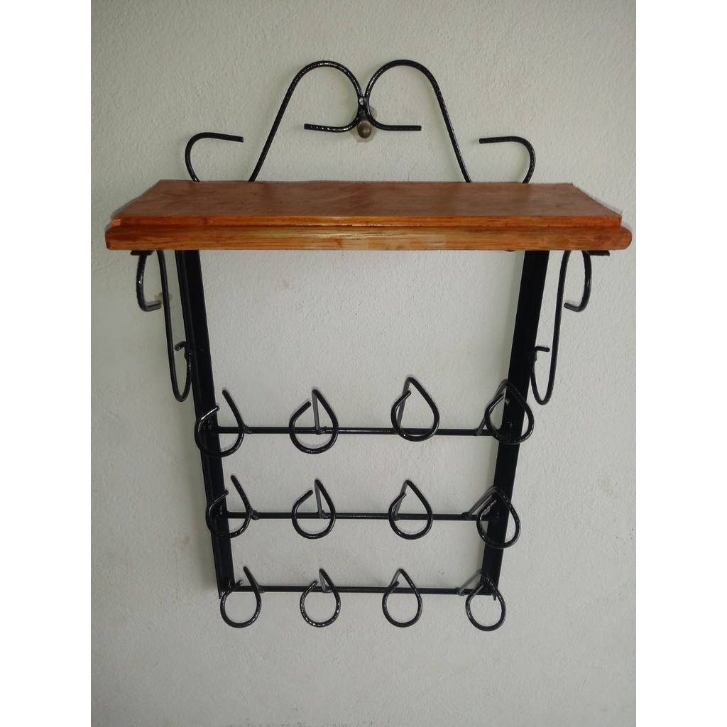 Porta Copos De Parede Ferro Madeira Cozinha Artesanal Oferta