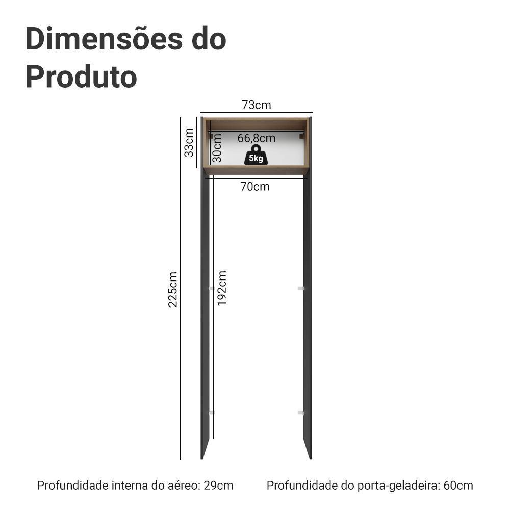 Porta-Geladeira 73 cm 1 Porta Basculante Preto/Rustic/Preto Glamy Madesa