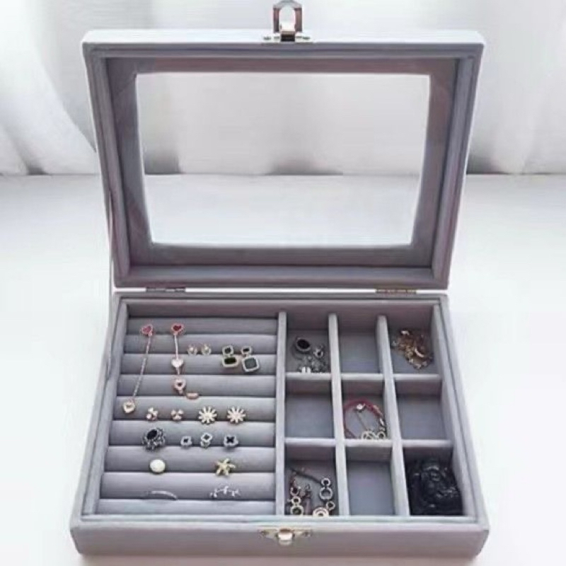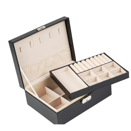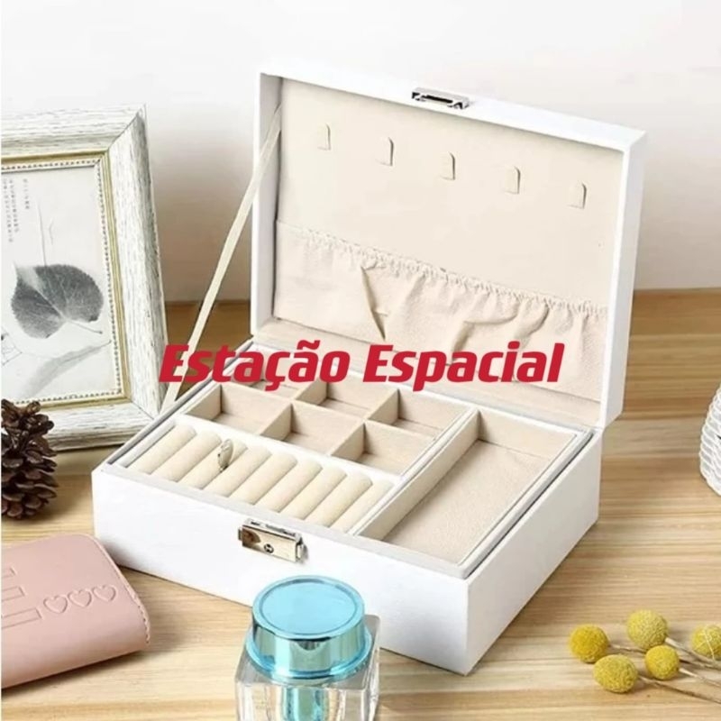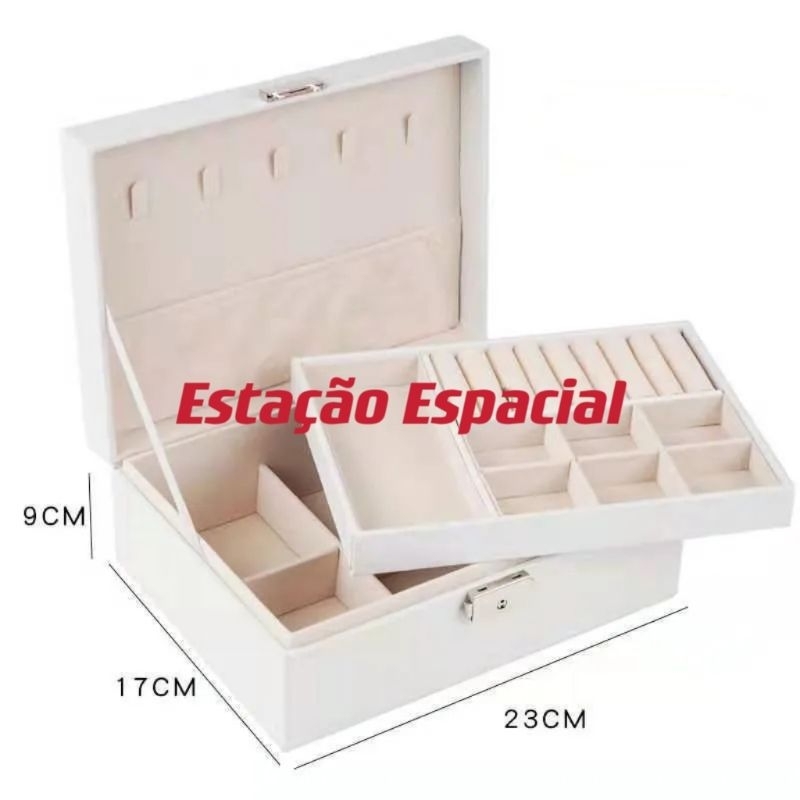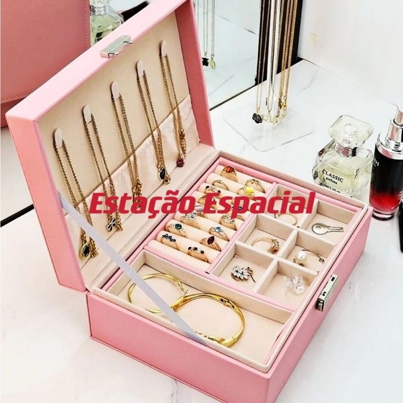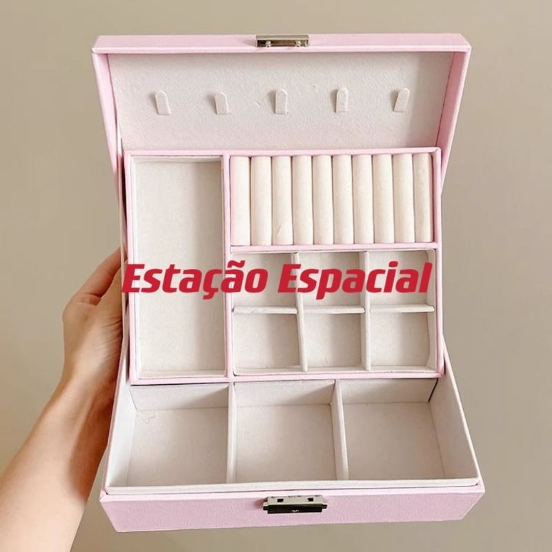 Porta Joia Grande três/Dupla Camada Multifuncional Couro com Chave