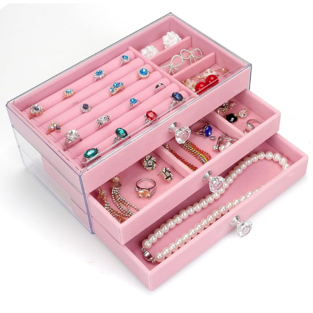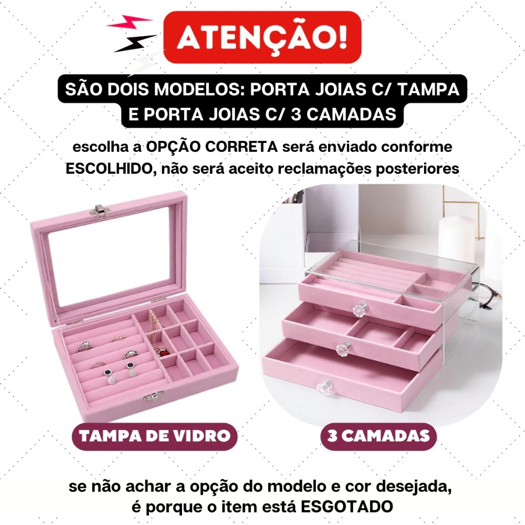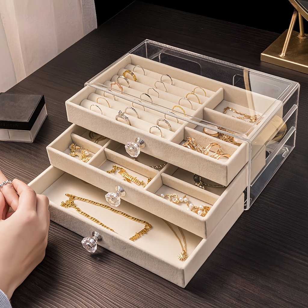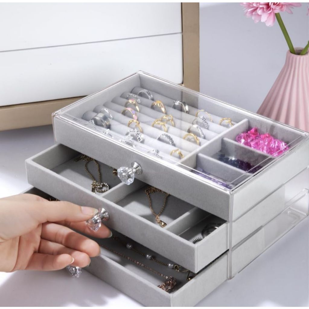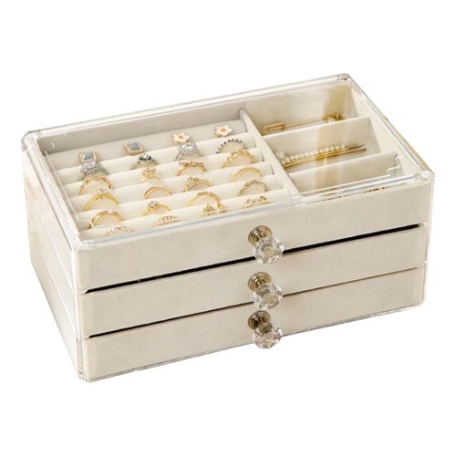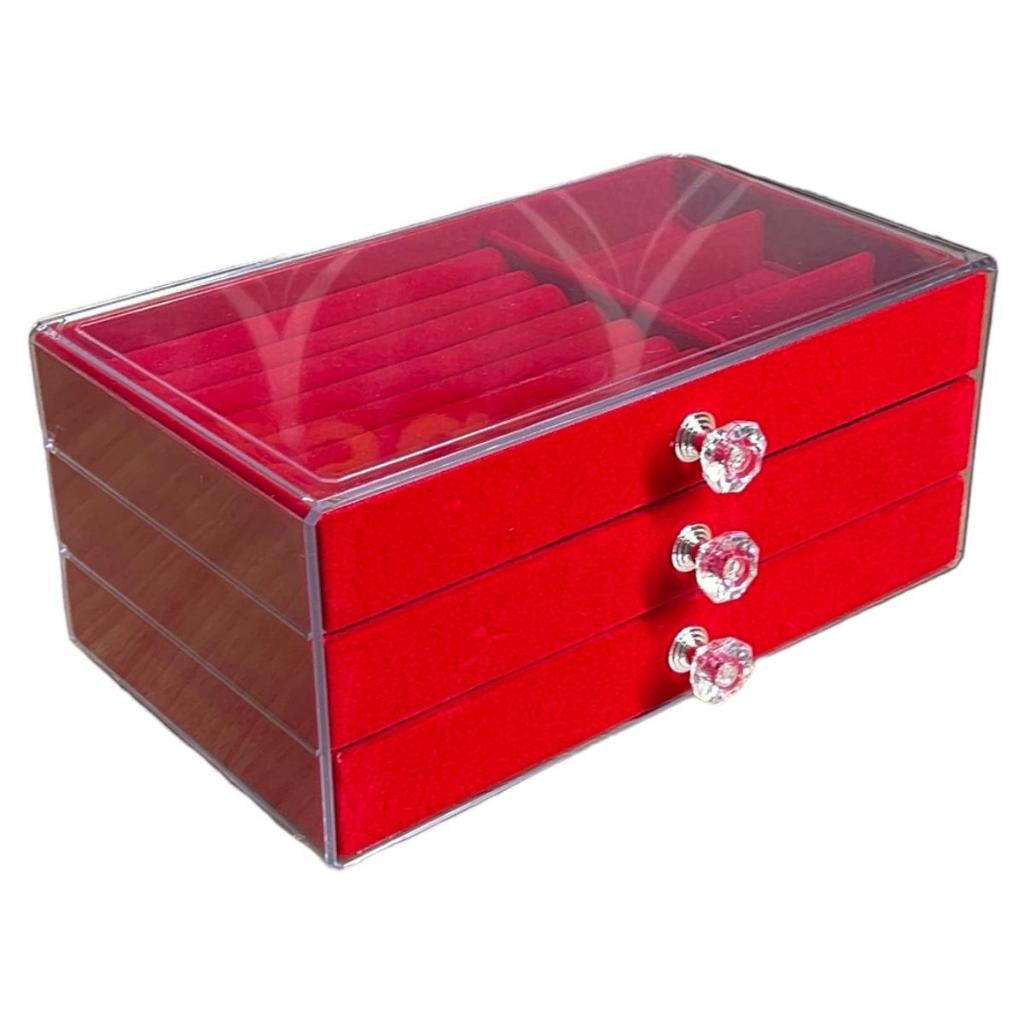 Porta Joias Acr ílico 3 Gavetas Organizador de Bijuterias Brinco Anel Colar