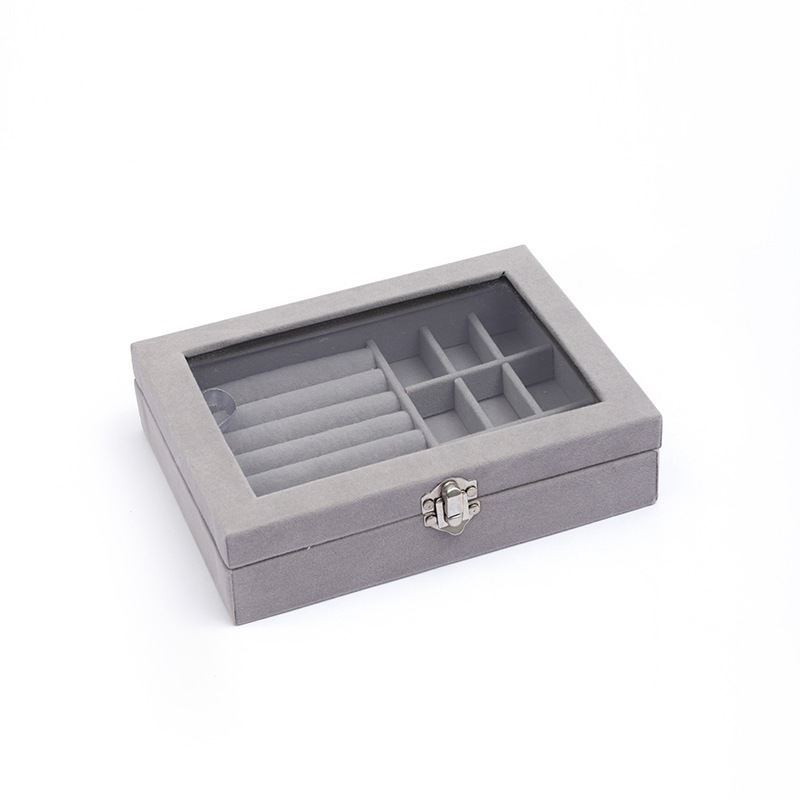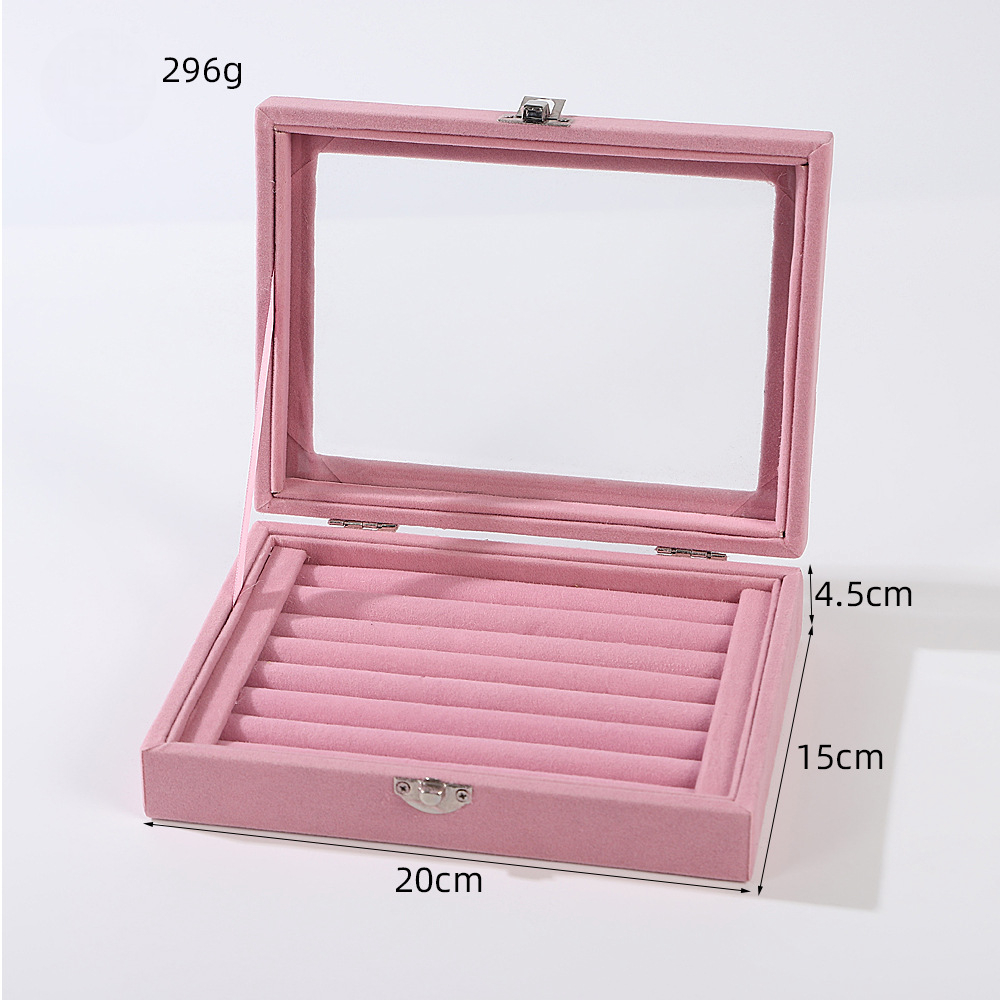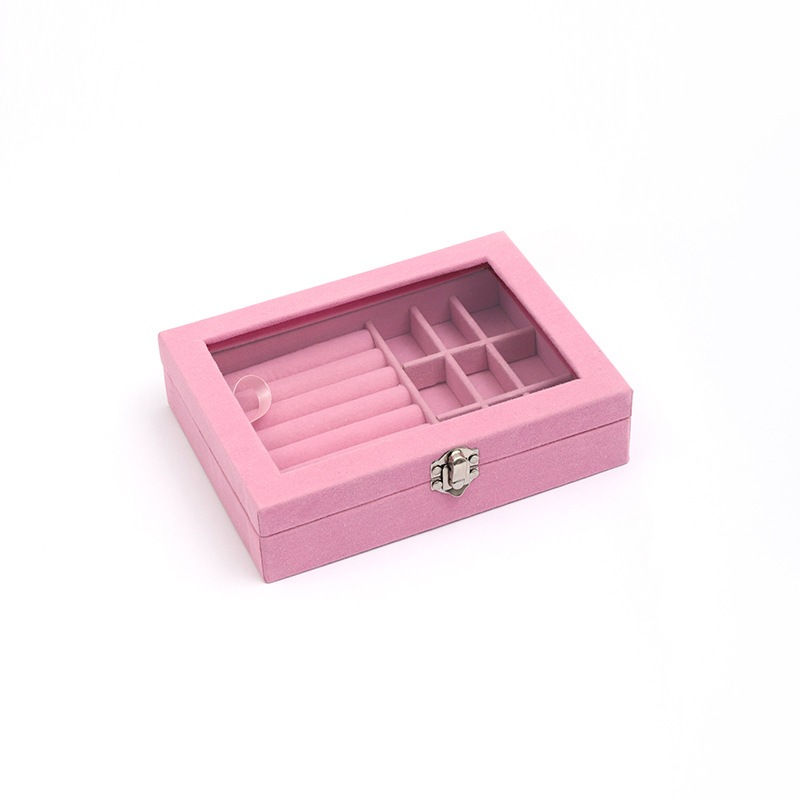 Porta Joias Caixa Organizadora De Veludo Transparente Com Fecho Para Anéis Brincos Colares Pulseiras