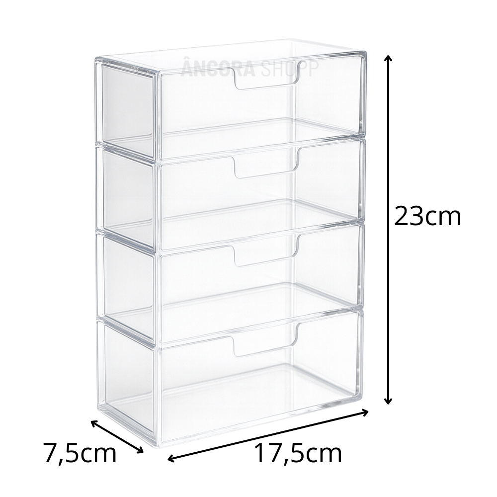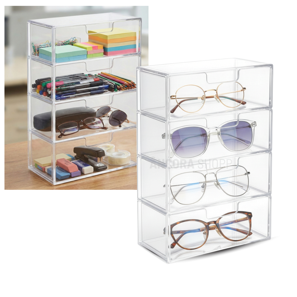 Porta Oculos Organizador Estojo de Escritórios 4 Divisórias Gavetas Acilico Transparência Paramount