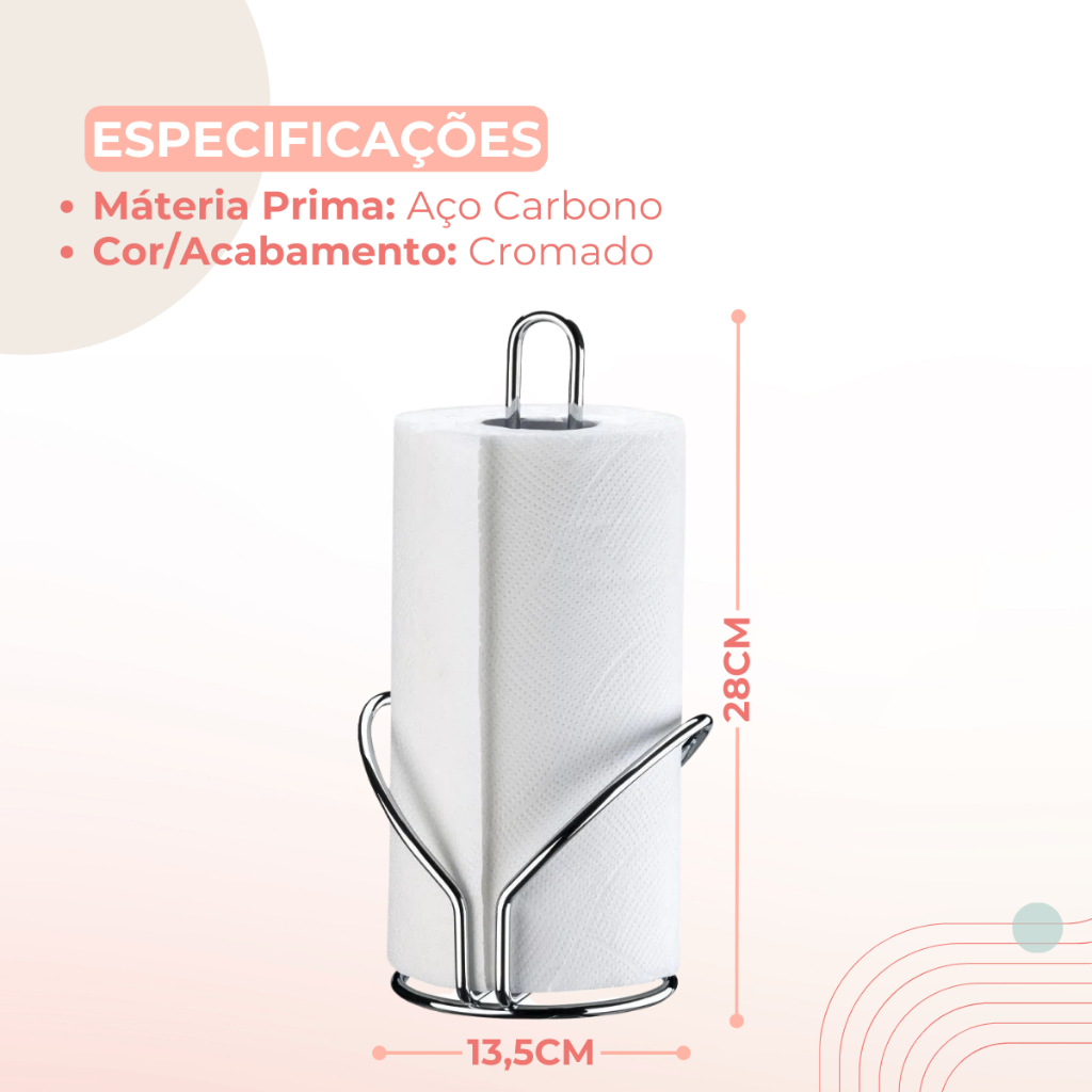 Porta Rolo Papel Toalha Para Mesa Cozinha Cromado Future