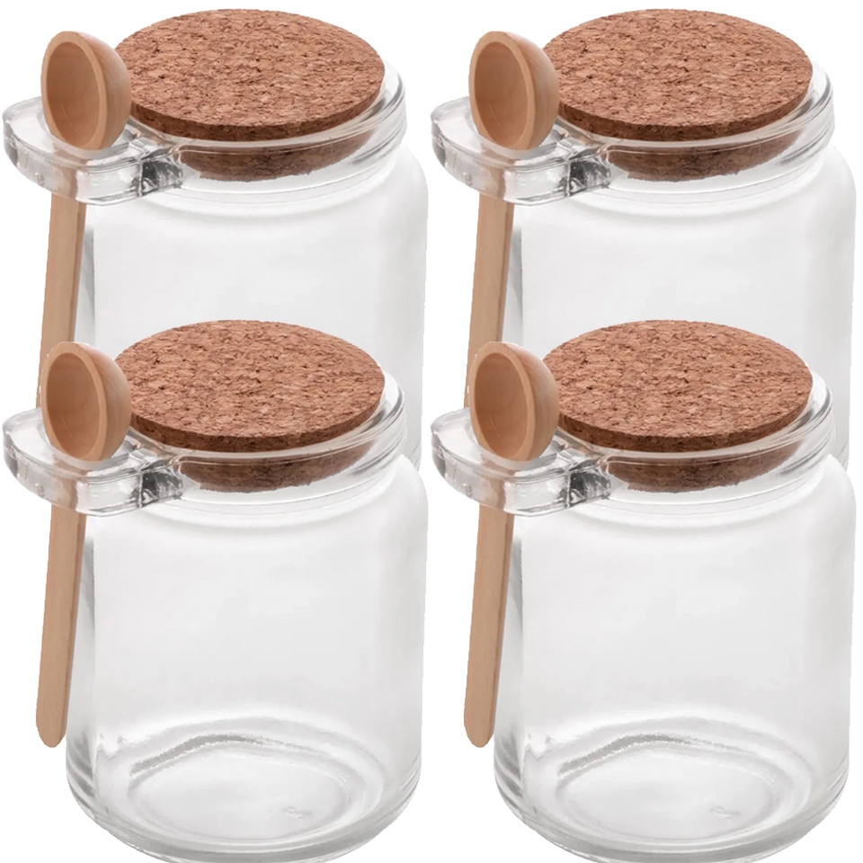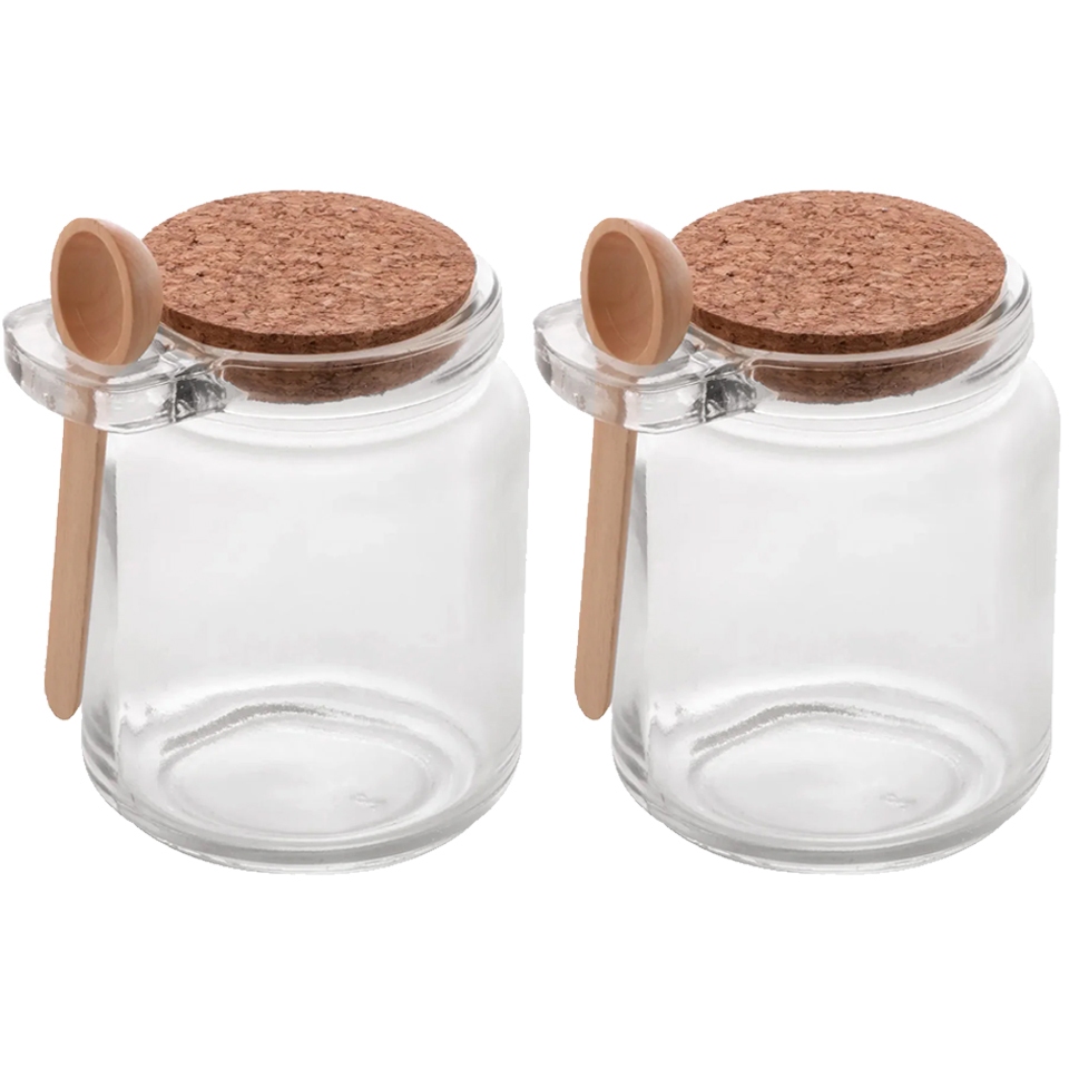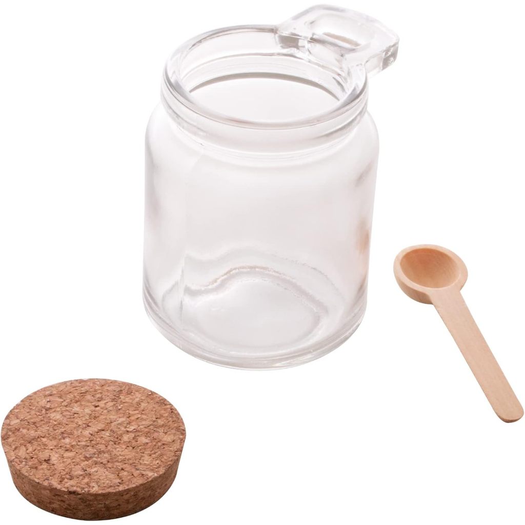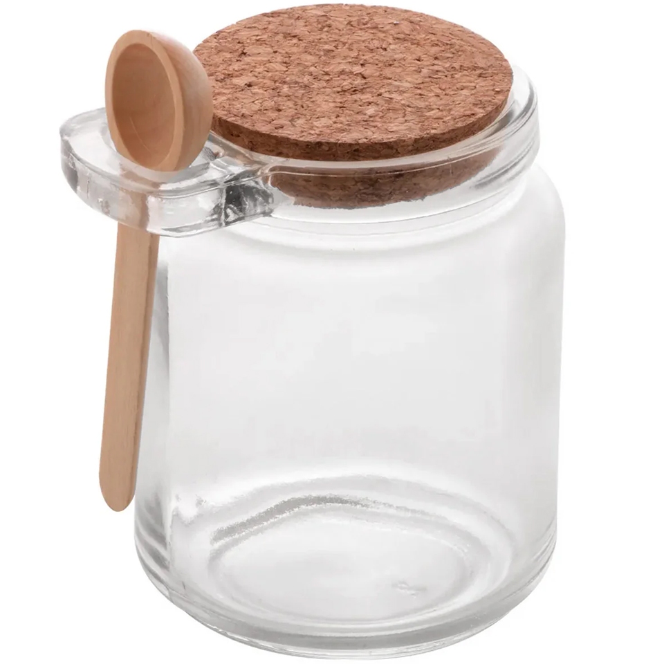 Porta Tempero Condimento de Vidro com Colher de Bambu Tampa Rolha 240ml Pote Saleiro Açucareiro Lyor