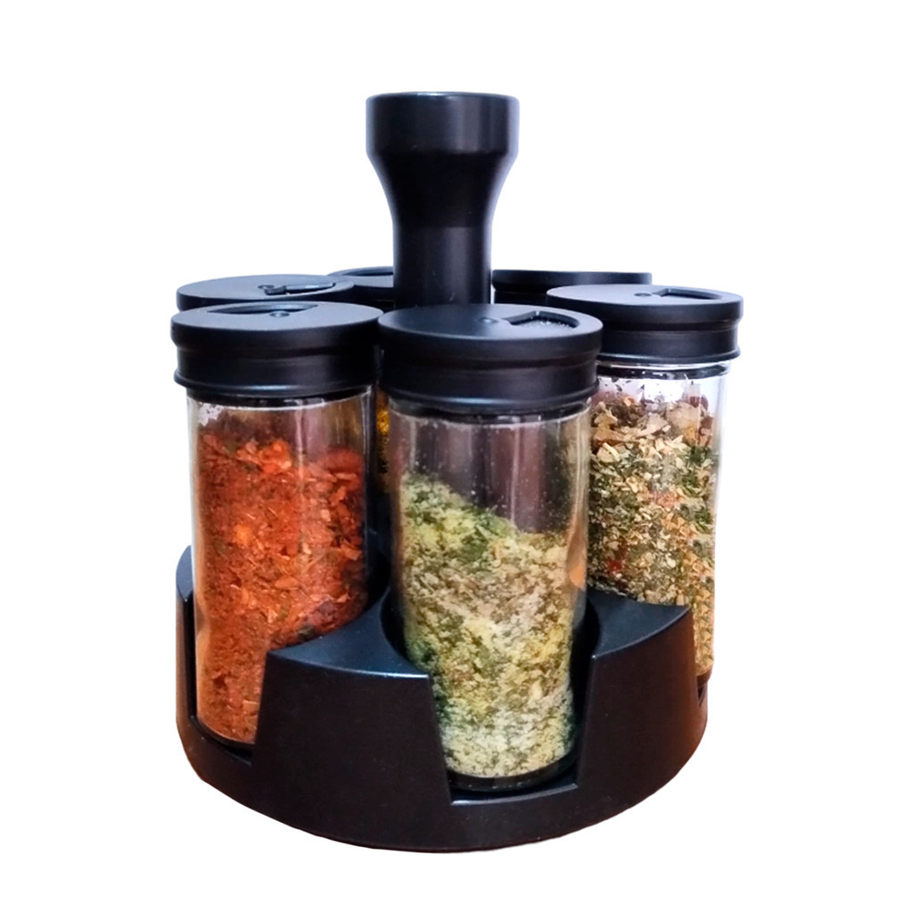 Porta Tempero Giratório com 6 potes de Vidro 90G cada TOP