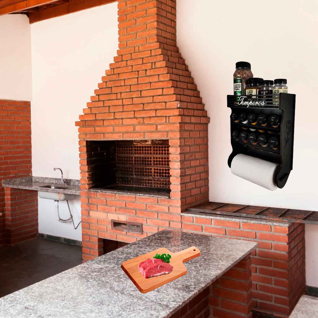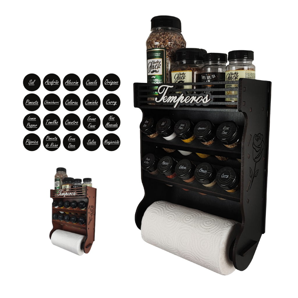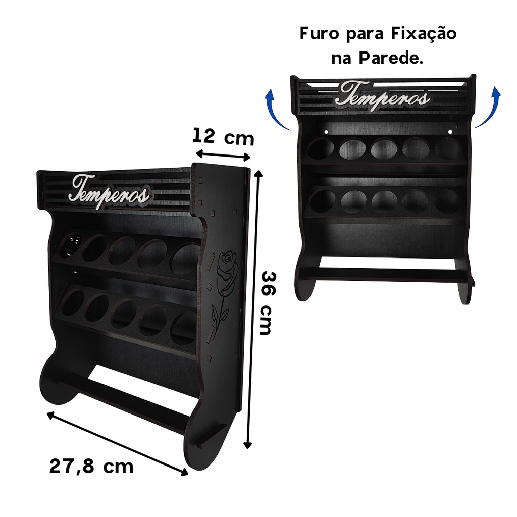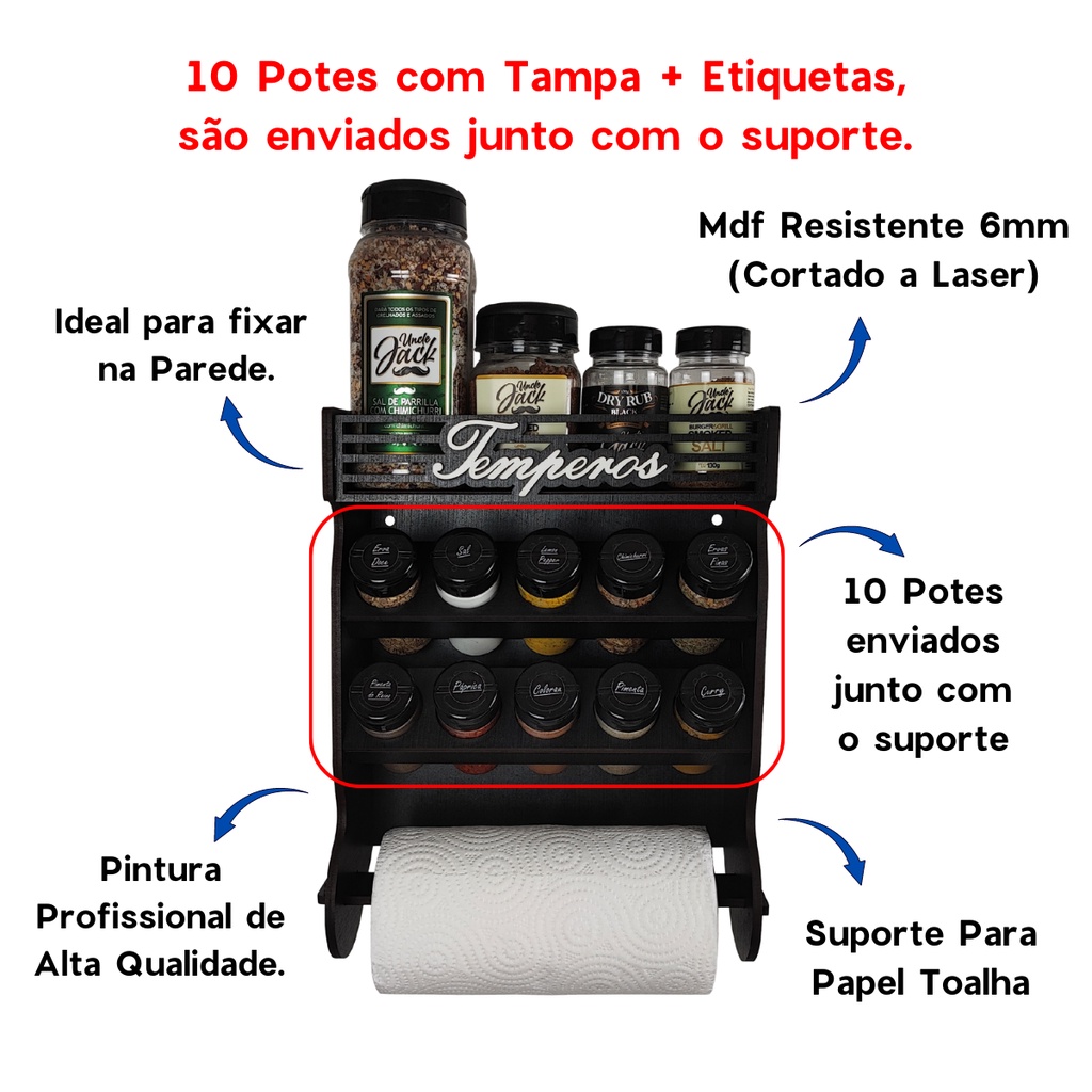 Porta Tempero de Parede 10 Potes com Local Para Colocar Potes de Sal e Cartela de Etiquetas