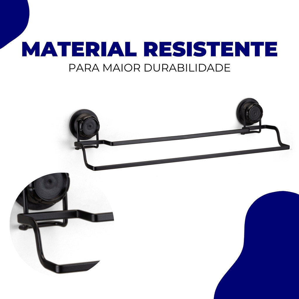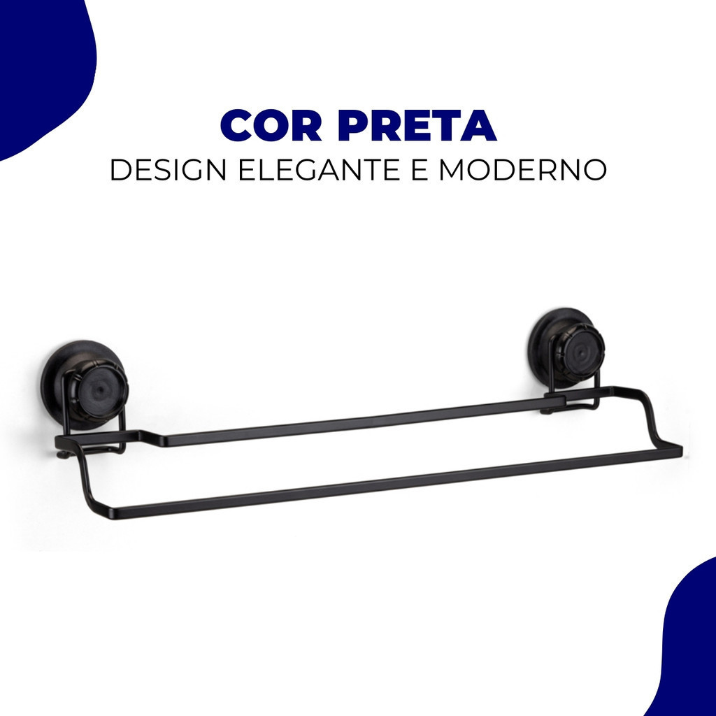 Porta Toalha de Banho Toalheiro Box Banheiro Parede Azulejo Fixação S/ Furo Ventosa Preto Arthi