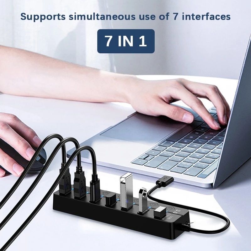 Porta USB HUB 7 Em 1 Para USB3.0 USB2.0 Docking Station Com Interruptor De Alimentação Carga De Transferência De 5 Gbps
