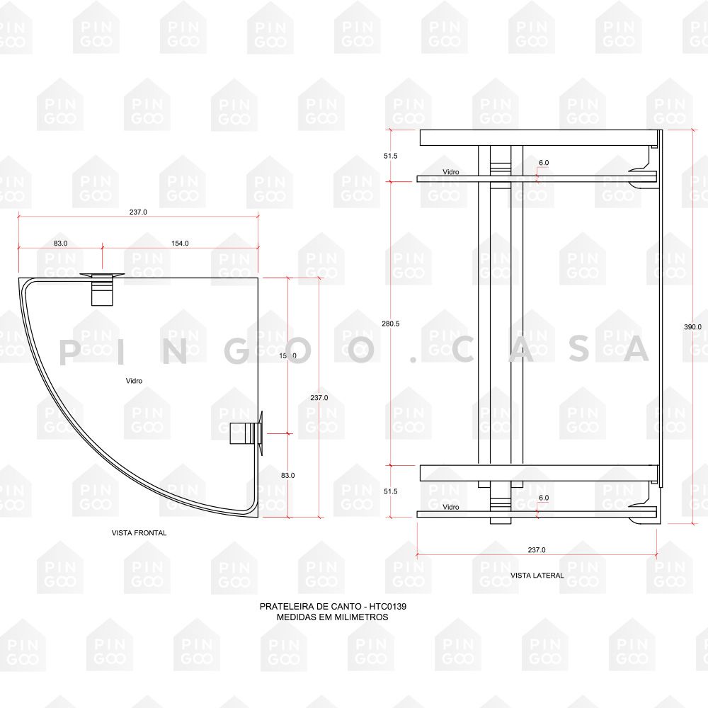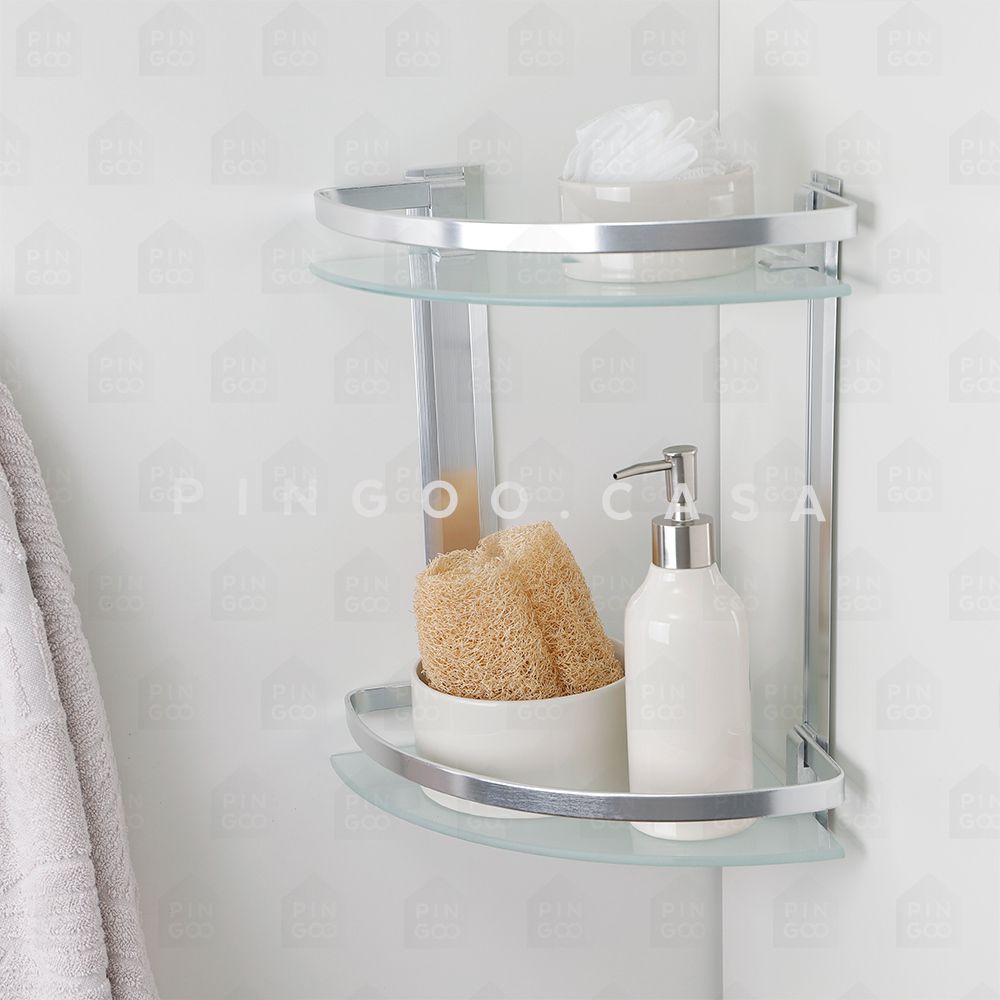 Porta shampoo banheiro vidro duplo canto Pingoo