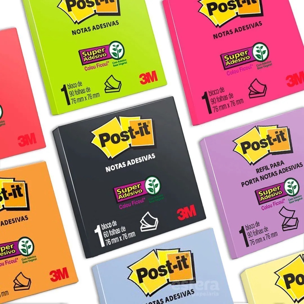 Post-it Bloco Notas Adesivas para Recados e Lembretes 76x76mm 90 Folhas - Cores Diversas