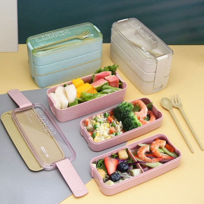 Pote Marmita Lancheira Com 3 Compartimentos Divisória e Talheres