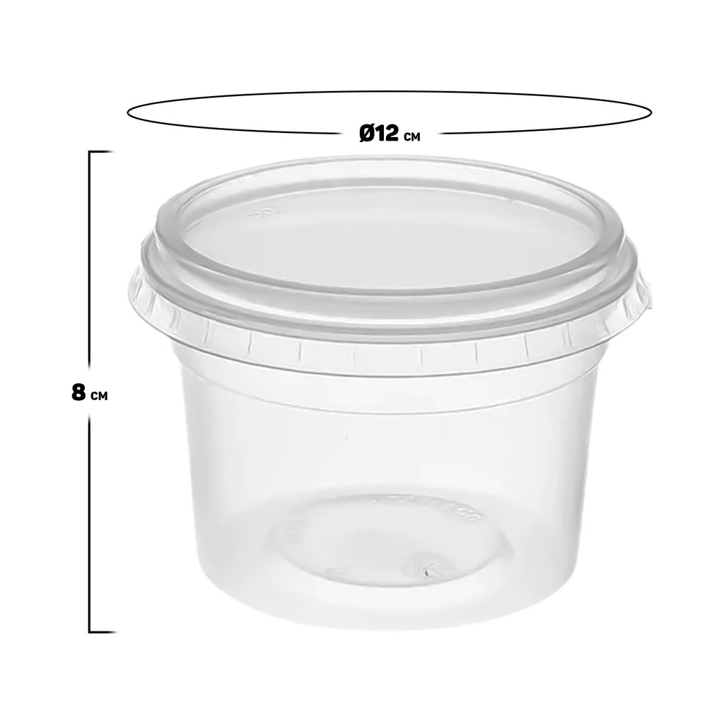 Pote Plástico Redondo 250 / 380 / 500 ml 25und Descartável Com Tampa Bolo Pote Açaí Marmita Freezer Microondas