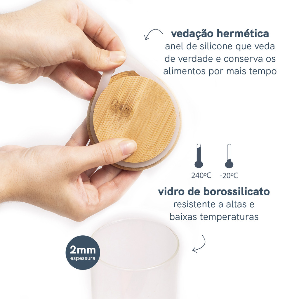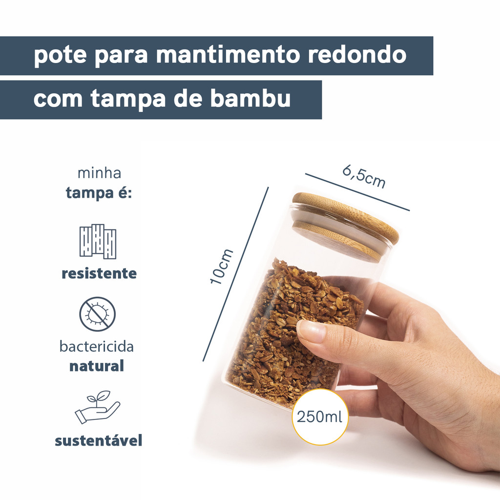 Pote de Vidro de Mantimentos 250ml C/ Tampa de Bambu Oikos