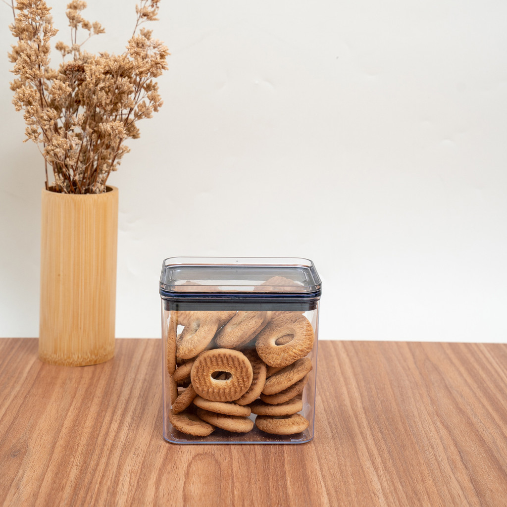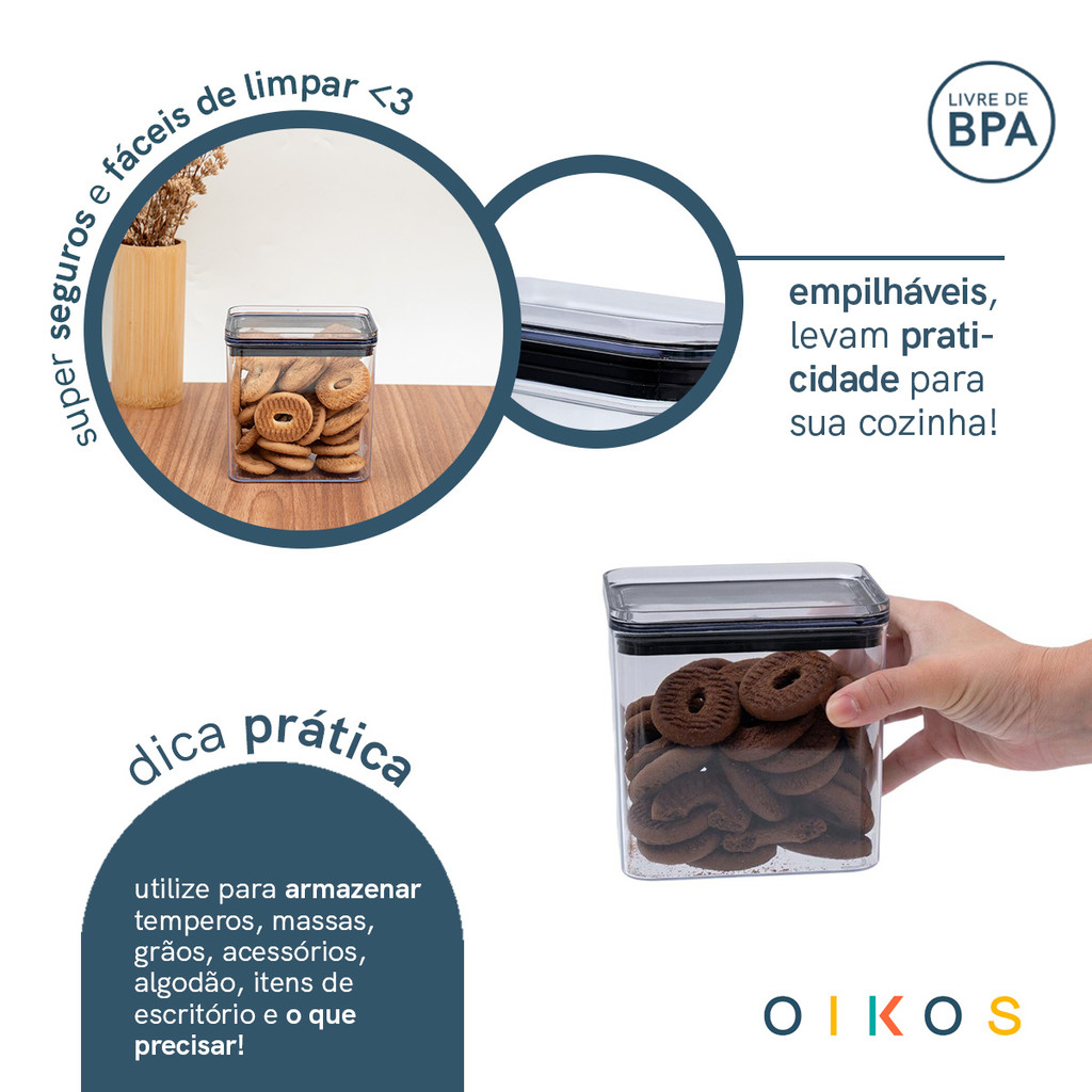 Pote de acrílico 1,1L com tampa transparente quadrado empilhável - Oikos