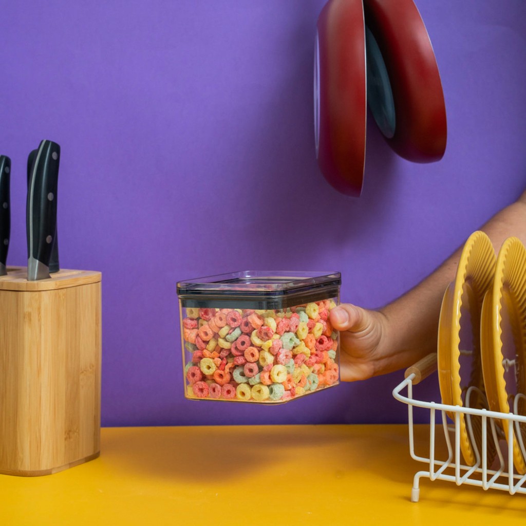 Pote de acrílico 800ml com tampa hermético quadrado - Tüd