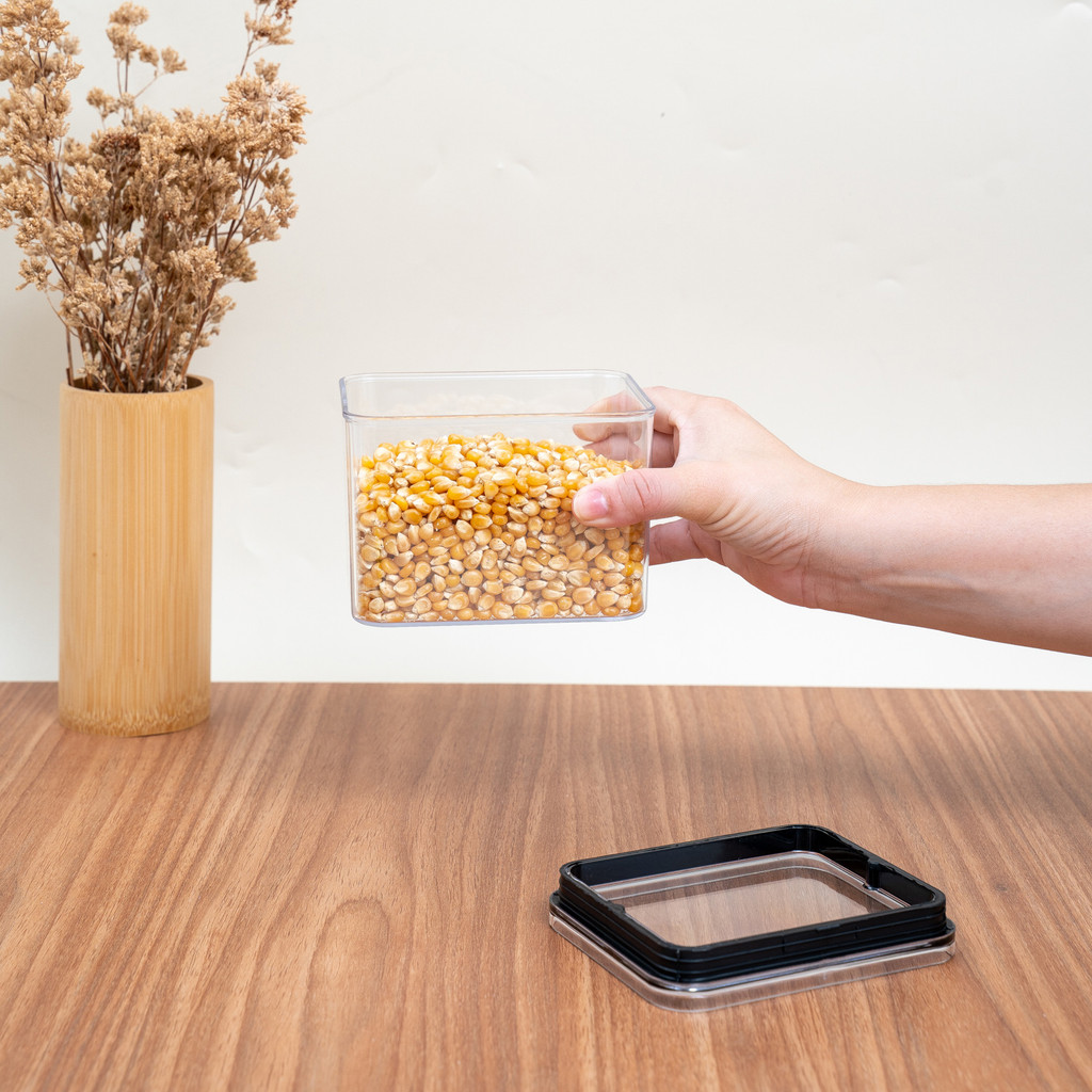 Pote de acrílico 800ml com tampa transparente quadrado empilhável - Oikos
