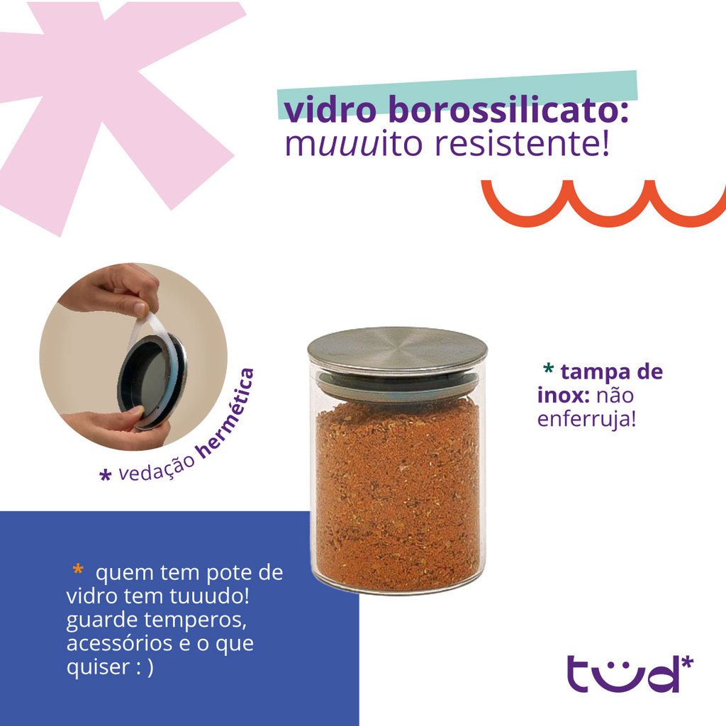 Pote de vidro 210ml com tampa inox hermético redondo - Tud