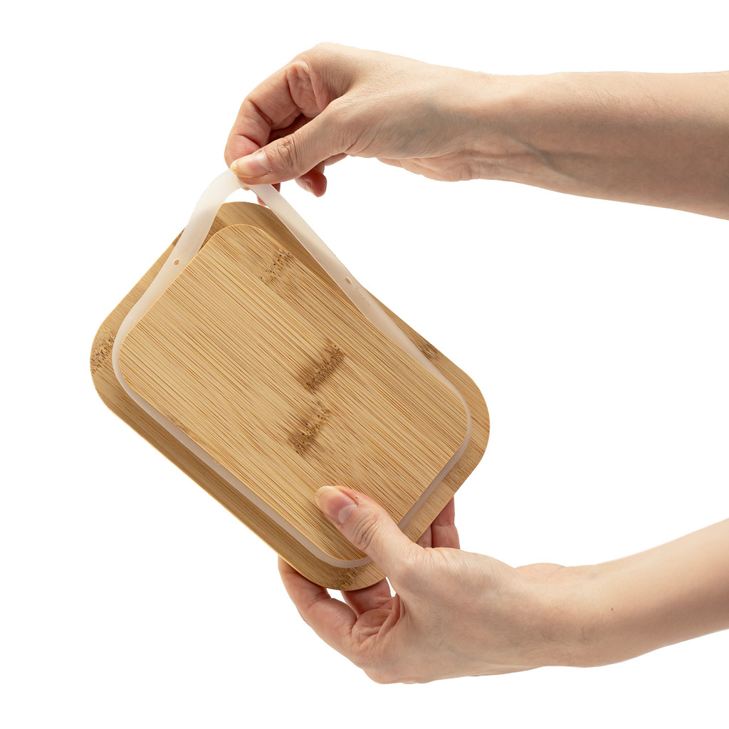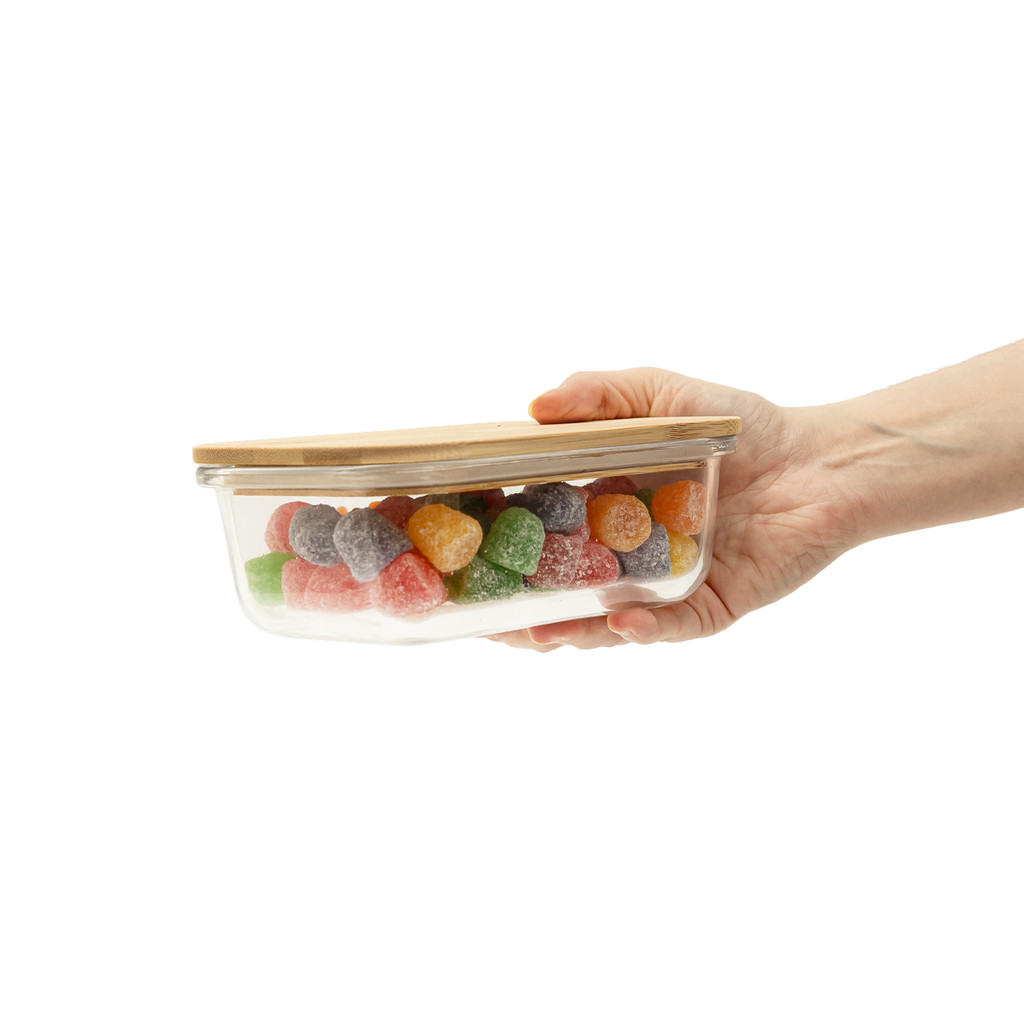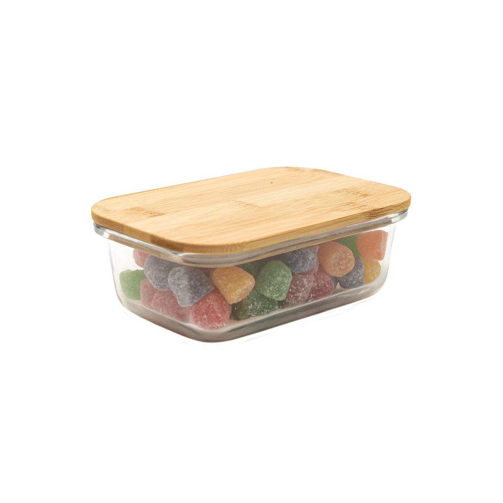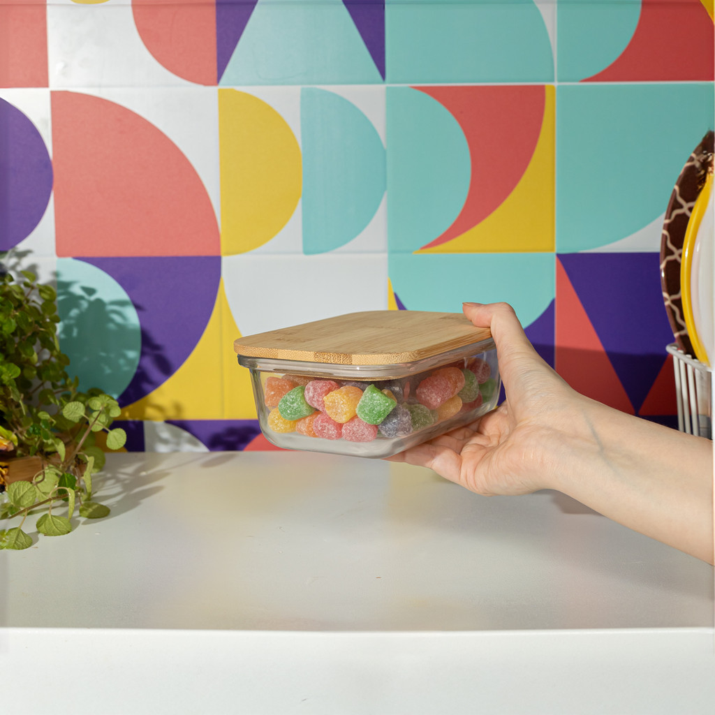 Pote de vidro 600ml com tampa de bambu hermético retangular - Tud