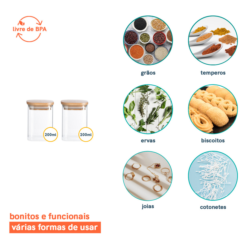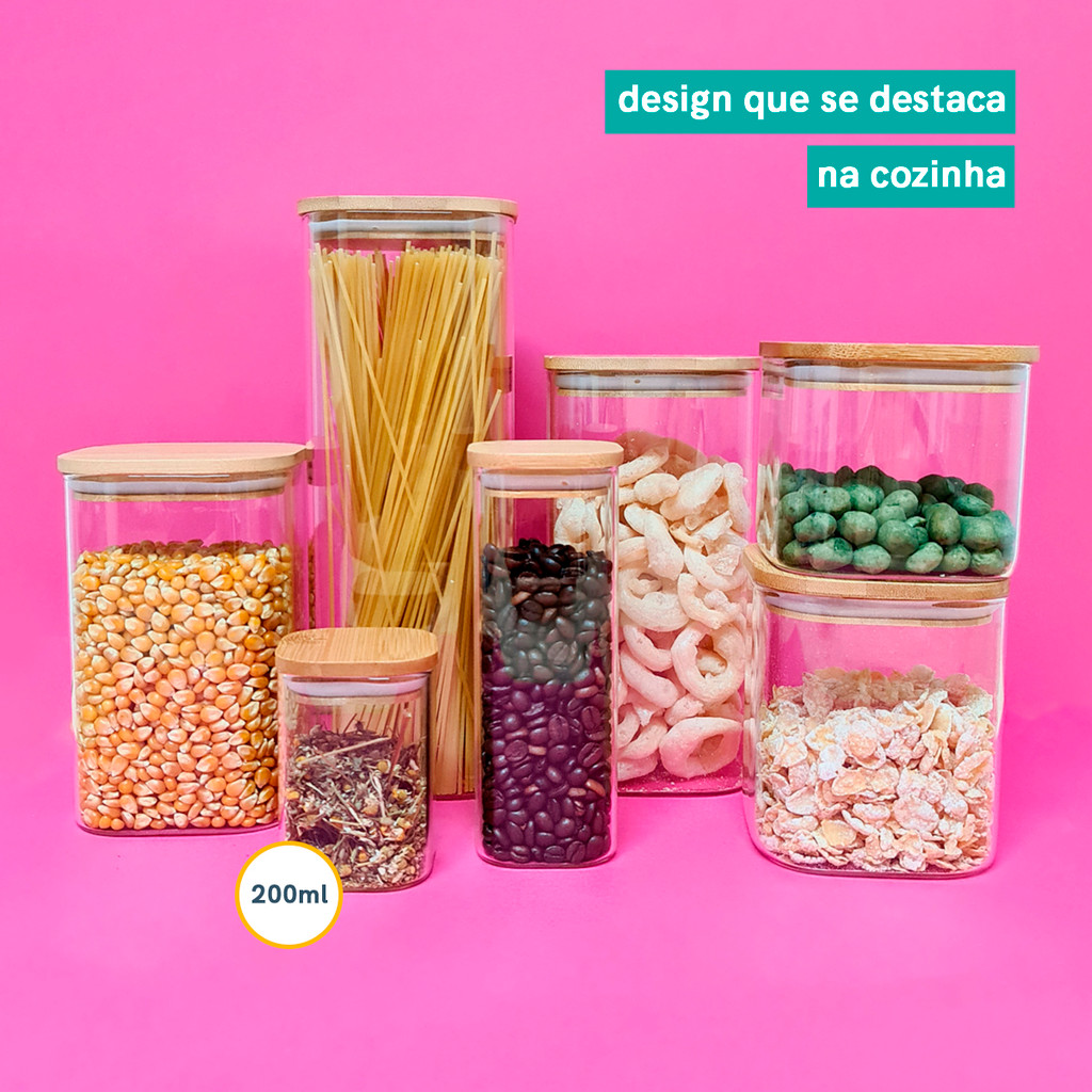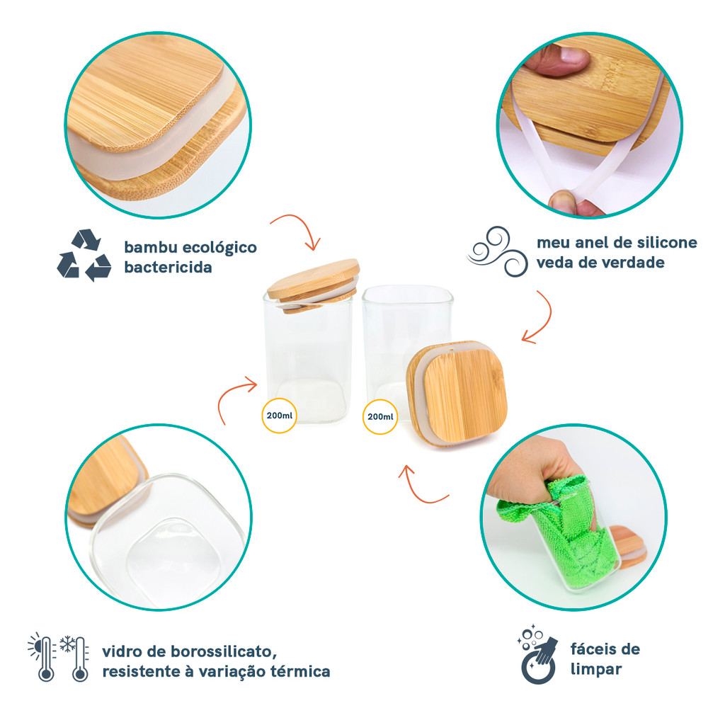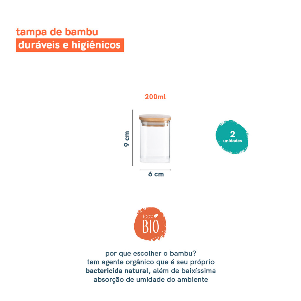 Potes de Mantimentos Quad 200ml C/ Tampa Bambu Oikos - 2 Pçs
