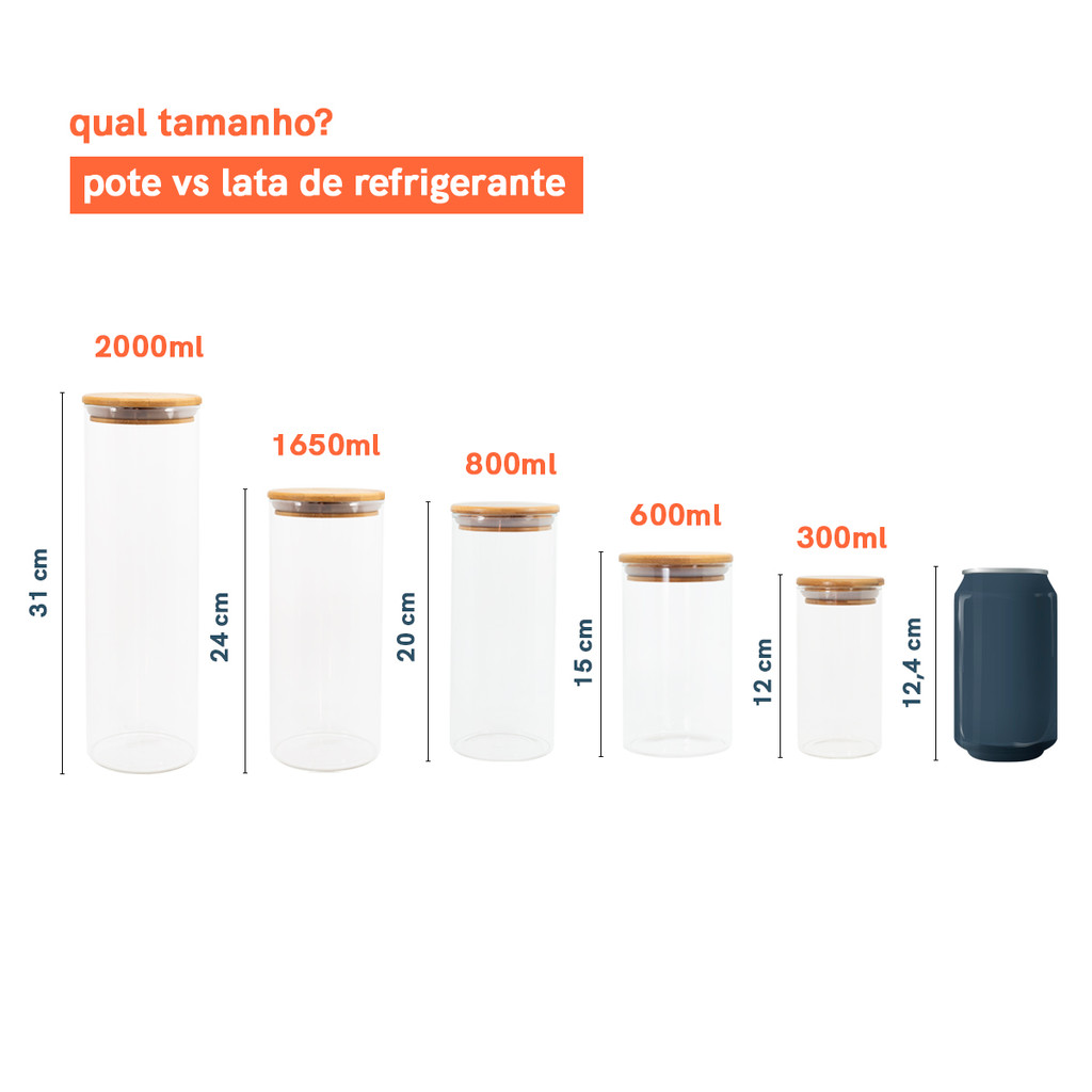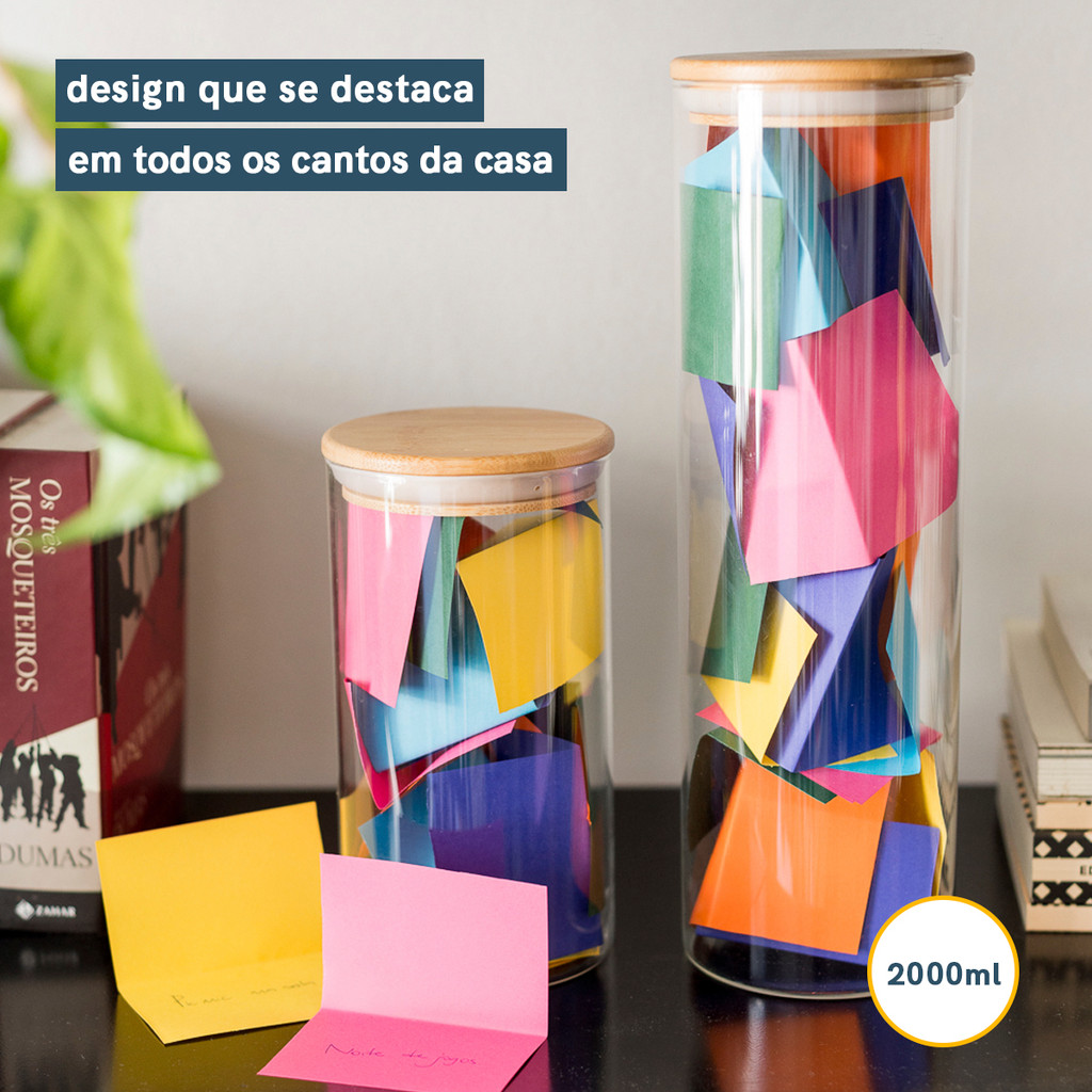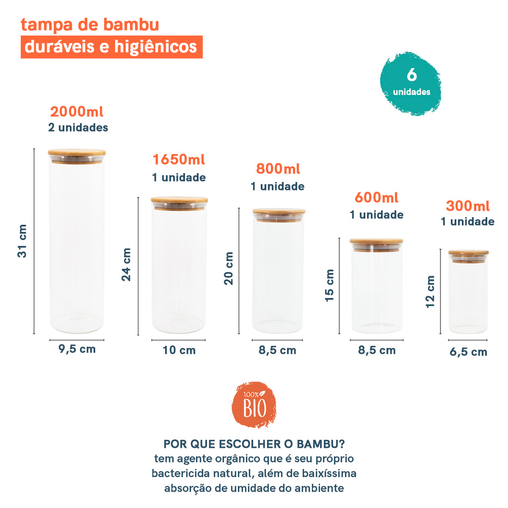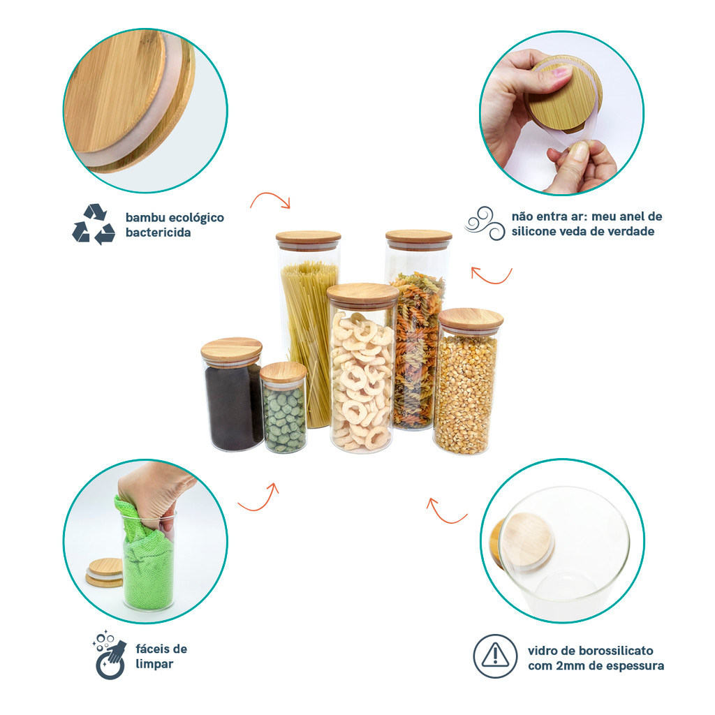 Potes de Vidro P/ Mantimentos C/ Tampa Bambu Oikos - 6 Pçs
