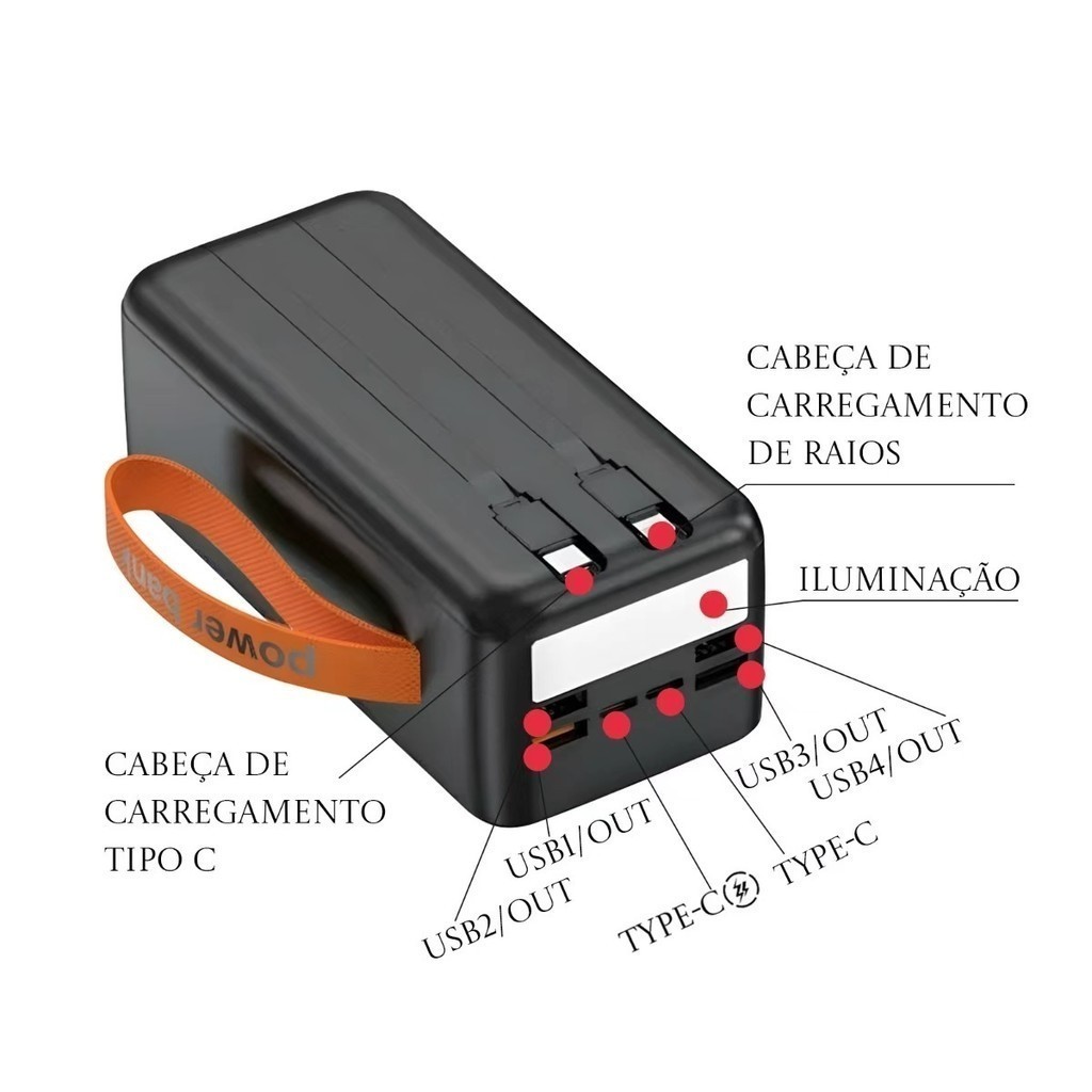 Power Bank 50000mAh com Chip Inteligente e Display LED – Suporte 66W, Tipo-C e IOS marisa