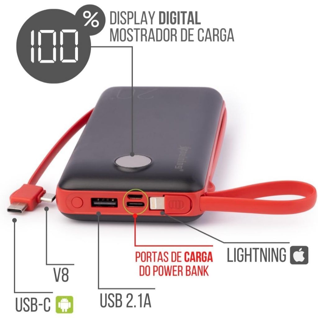 Power Bank Carregador Portátil 20.000mAh Digital compatível com iPhone e Samsung