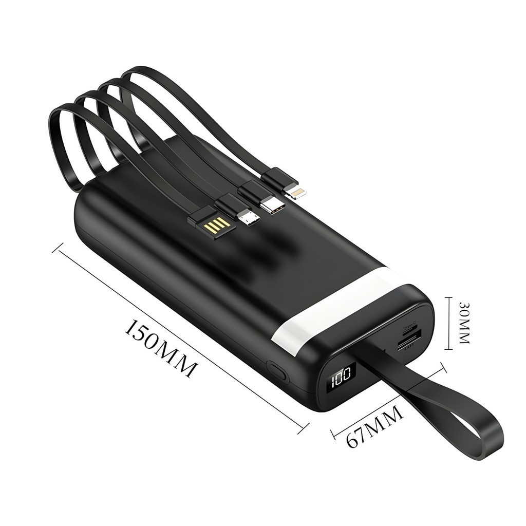 Carregador Portátil 20000mAh Power Bank com Cabos Integrados USB Tipo C Lightning Display Digital