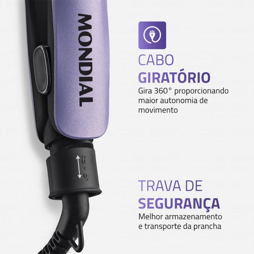 Prancha Alisadora Mondial Space Shine Lilás 50W Bivolt - P-26