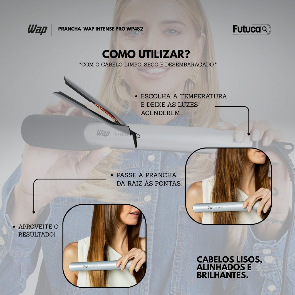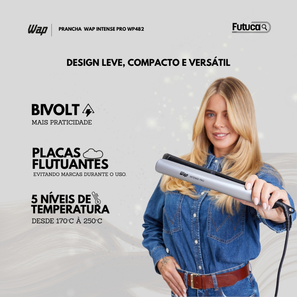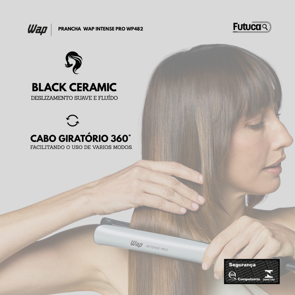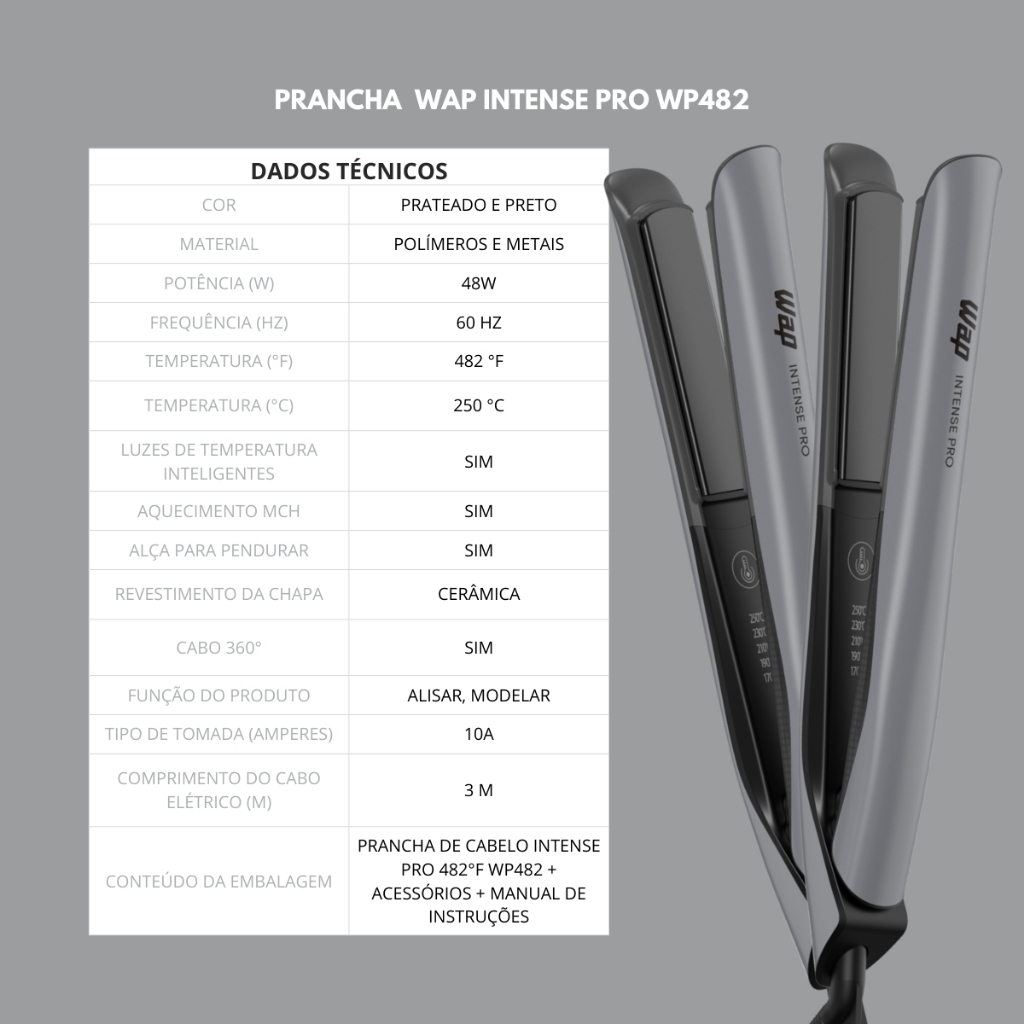 Prancha Cabelo WAP INTENSE PRO WP482 250°C 5 Níveis Temperatura Revestimento Black Ceramic Cabo 3M