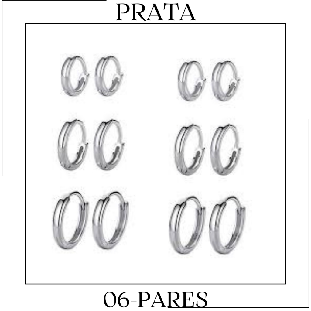 Prata 6 Pares De Brincos Circulares De Aço Inoxidável Conjunto Unissex Banhado A Ródio Punk Rock