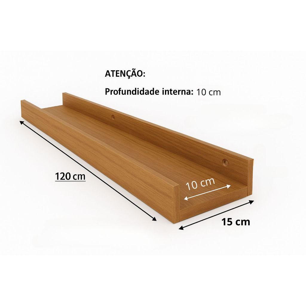 Prateleira Calha Suspensa 120x10 cm Porta Temperos, Livros, Fotos
