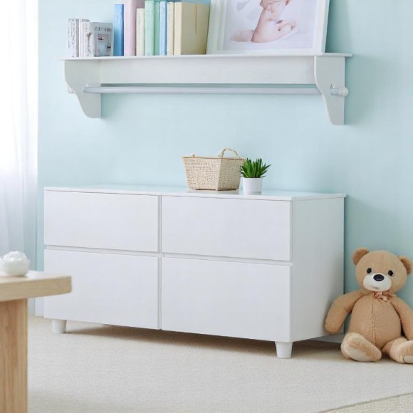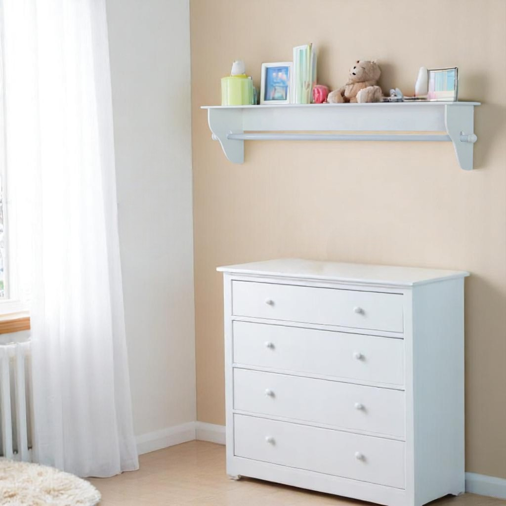 Prateleira Porta Fraldas com Varão 1m em MDF Branco Quarto de Bebê