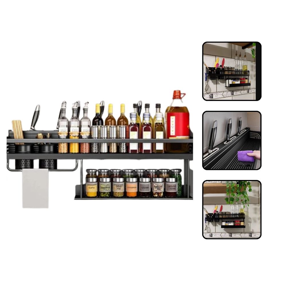 Prateleira de Parede Cozinha Porta Tempero Condimentos 60cm Organizadora Multiuso