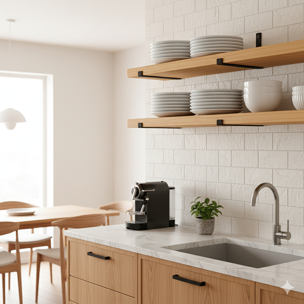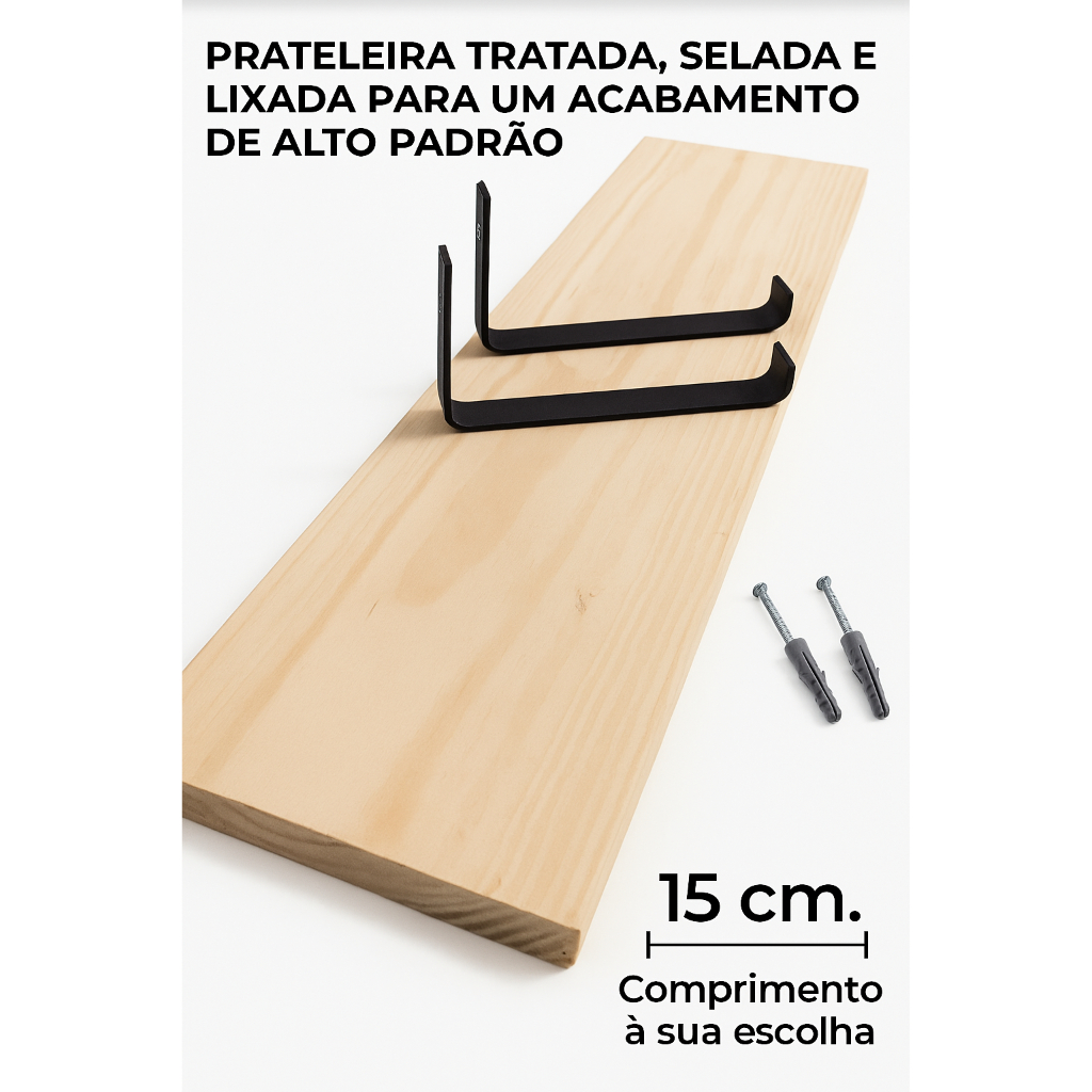 Prateleira de madeira rustica com mao francesa industrial invertida