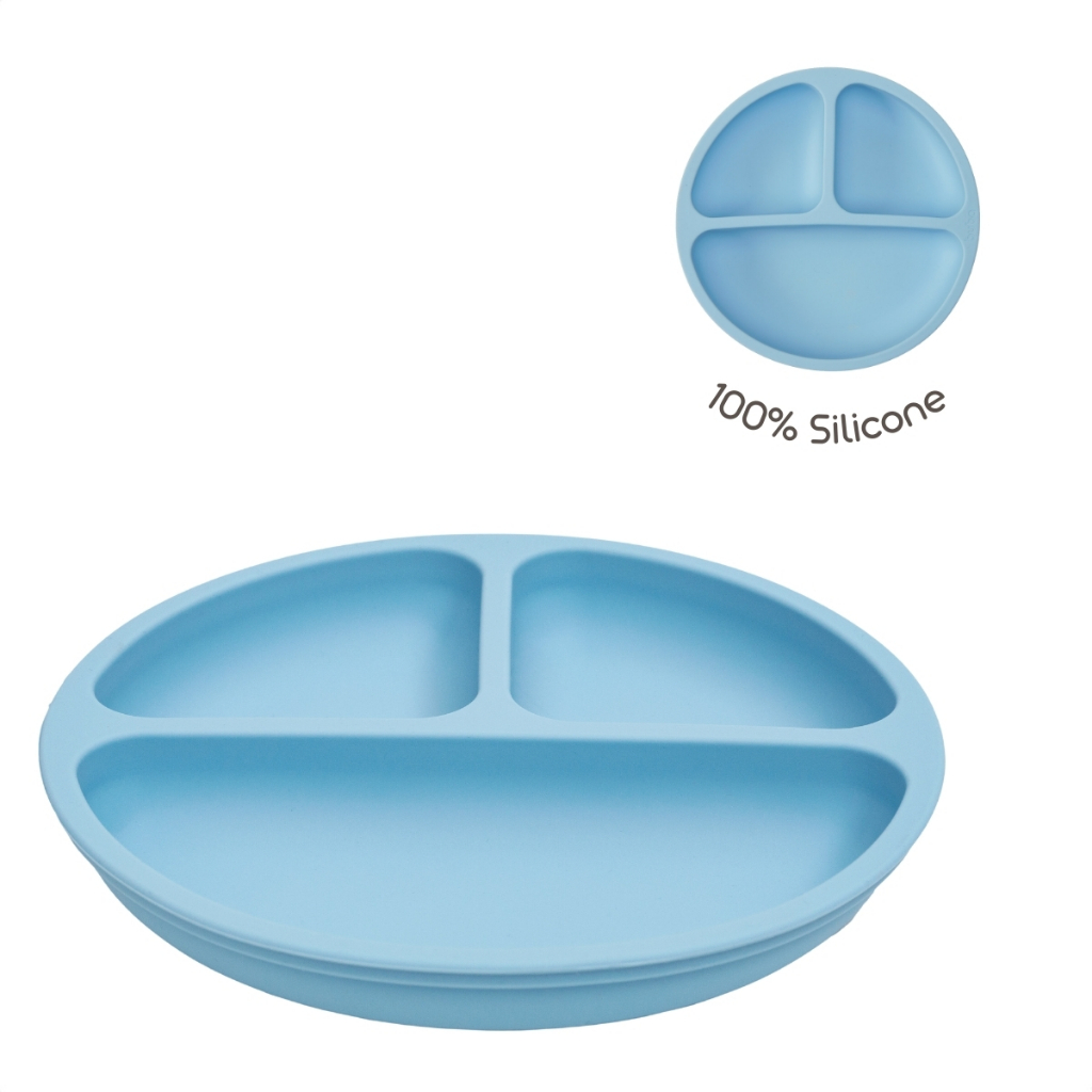 Pratinho de Silicone com Ventosa e Divisórias para Papinha do Bebê Buba