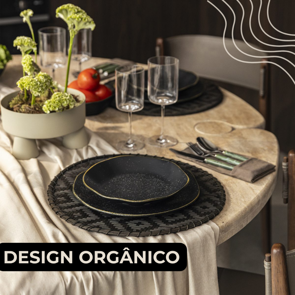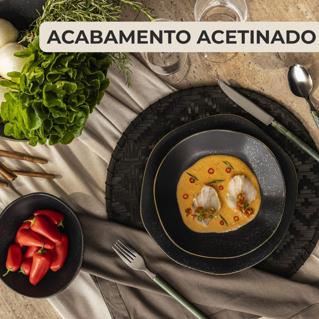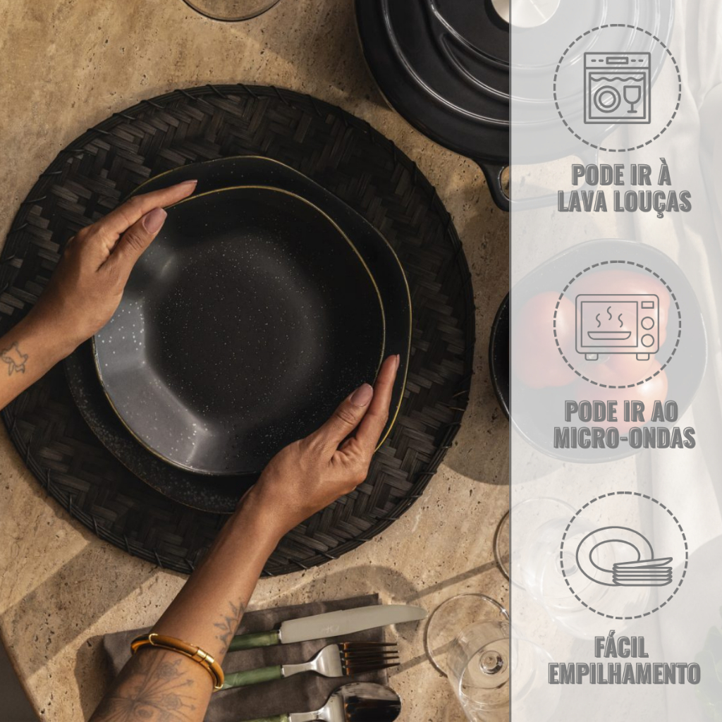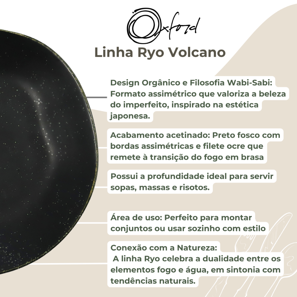 Prato Fundo Ryo Volcano 6 Unidades 22,5cm Preto Acetinado Oxford Porcelanas