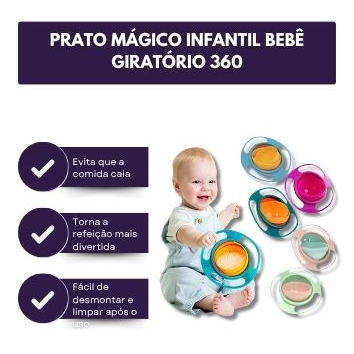 Prato Mágico Infantil Bebê Giratório 360 Não Derrama Super Prático E Seguro